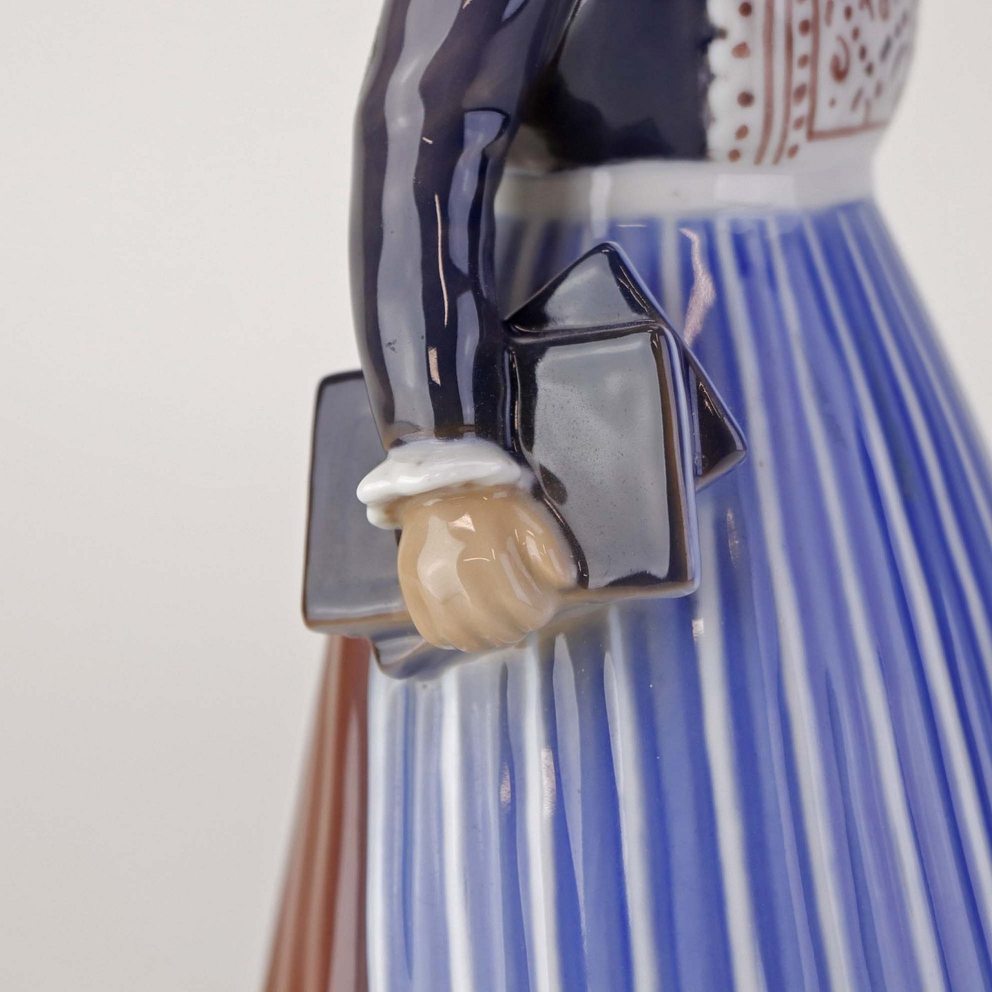 Figur i porcelæn med motiv af skolepige fra Skåne. Nr. 1378