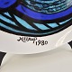 Platte af kongeligt porcelæn med motiv af to hvaler i rød og blå nuancer. Nr. 445/100