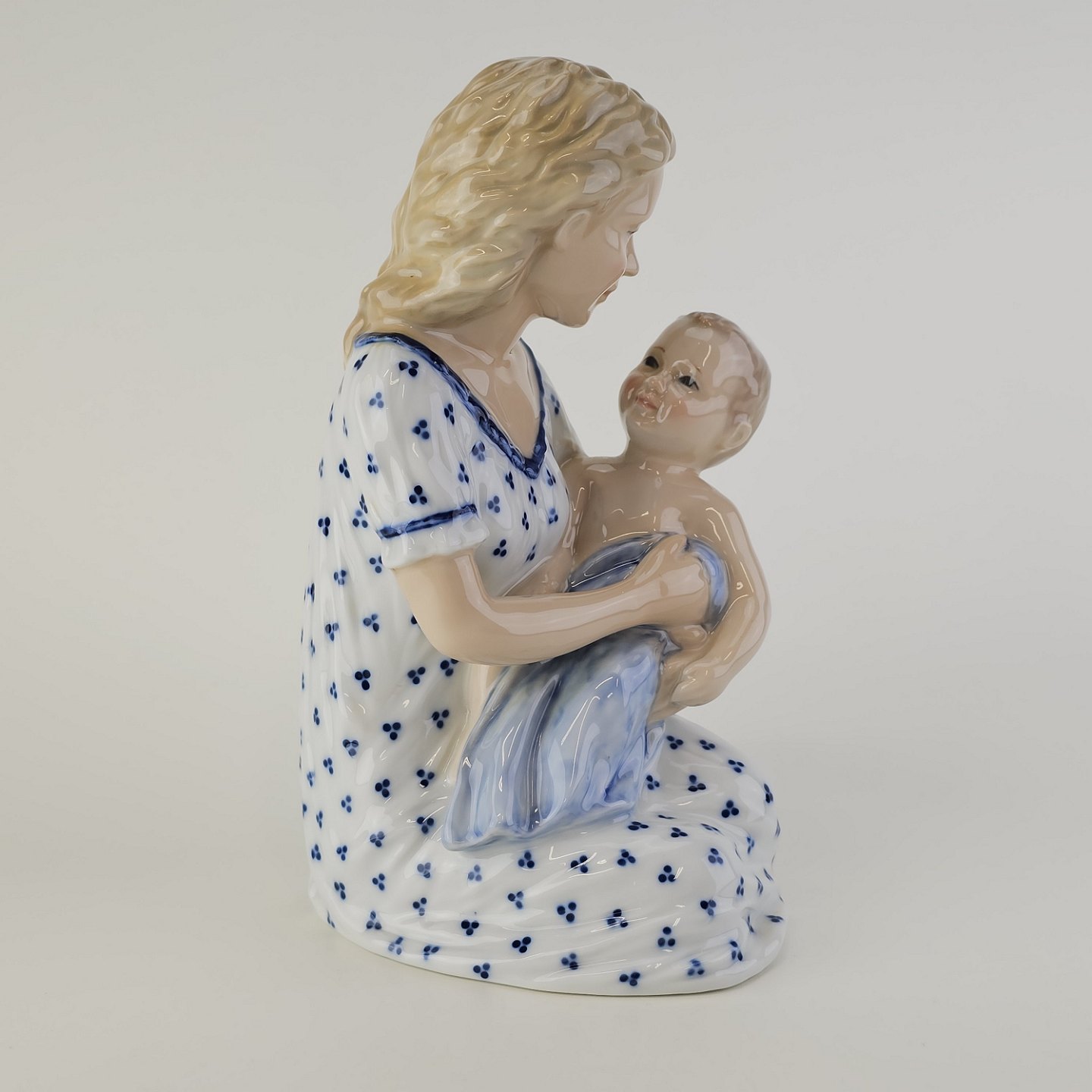 Figur i kongeligt porcelæn med motiv af en mor med et barn