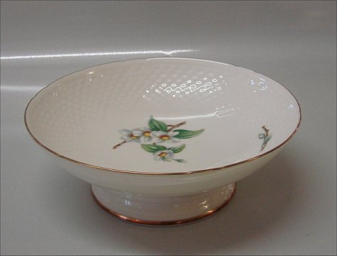 Beskrivelse: Bing & Grøndahl Heimdahl 223 Skål på fod, (mellem) 7 x 20 cm (428) - kremefarvet porcelæn med guldkant dekoreret med Jasmin - ikke at forveksle med Æbleblomst I fin og hel stand