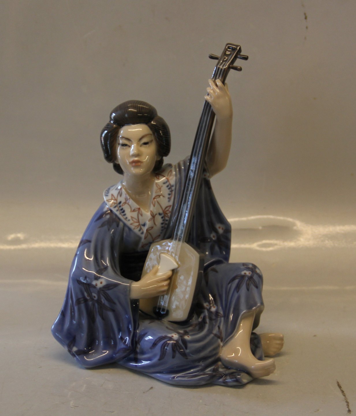 Description: Dahl Jensen Japan Girl 1155 Geisha playing instrument (DJ) 23.5 cm Marked with the Royal Crown and DJ Copenhagen. In nice and mint condition Dahl Jensen Worked first for Bing & Groendahl B&G from 1897