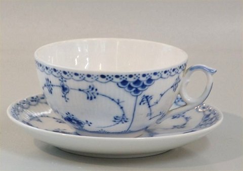 Royal Copenhagen Blue Fluted half lace 656-1 Office coffee cup (084?) - Large Tea cup H: 5.5 cm x D: 10.5 cm and saucer 14.7 cm