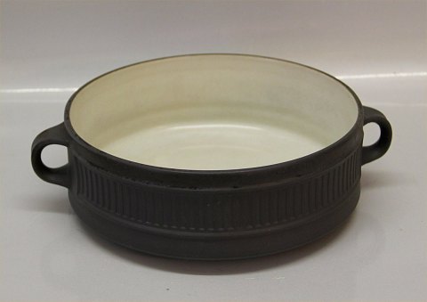 Beskrivelse: Flamestone IHQ: Skål 7,6 x 21 cm + håndtag Ovnfast stel fra 1950'erne, designet af Jens Harald Quistgaard (1919-2008). Fremstillet hos Eslau Danmark. Indvendig hvid glasur, yderside i rå skærv.Signeret Dansk Designs, Denmark, IHQ