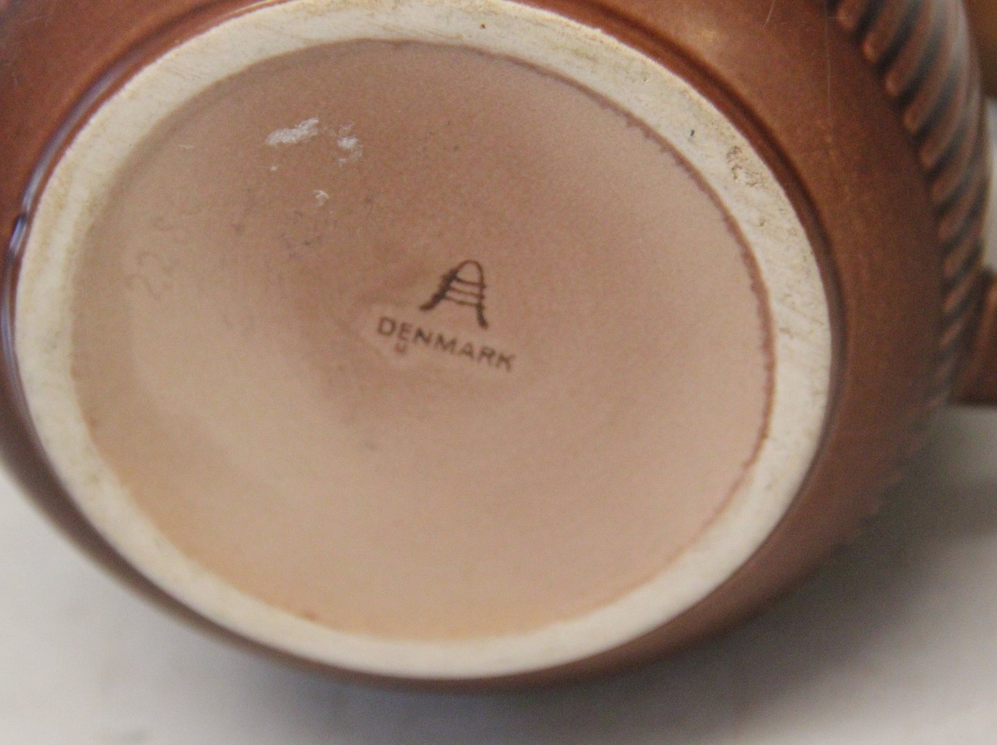 Description: Royal Copenhagen Brown Milch Pitcher ca. 13 x 19 cm ca 1940-1943 Aluminia Faience Nils Thorsson