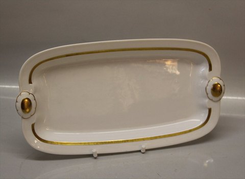 Beskrivelse: Bing & Grøndahl Gulnare med guldkant 096 Bakke, aflang 29 cm (364) I fin og hel stand.