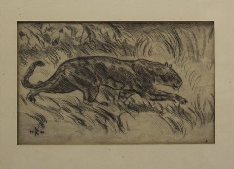 Knud Kyhn Radering - Snigende panter 30 x 38 KK 1941