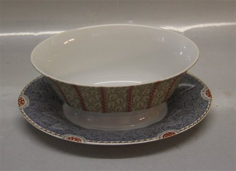 Description: Frey 563 Sauceboat on fixed stand 12 1/2 oz (8631) The Royal Copenhagen Fairytale Pattern was designed by Finn Næss-Schmidt and the actual drawings for the transferware were designed by Jørgen Nielsen . The Fairytale service was decorated on the Angualr form in both Grey and Terracotta versions so that all pieces would mix and match. At the time of production it was the most complex multicolor transferware ever produced by the Royal Copenhagen Factory.