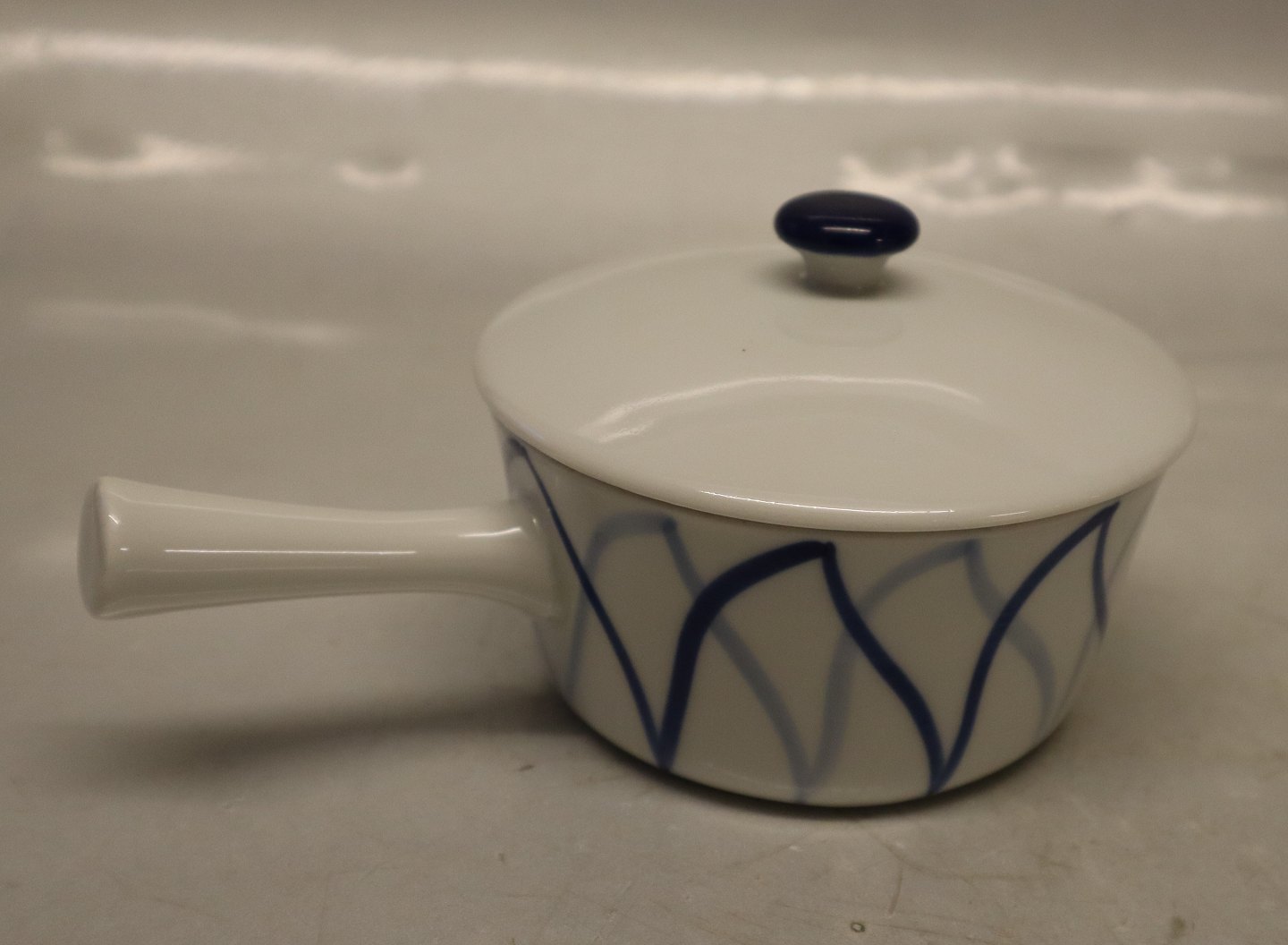 Smørskål med hank uden låg 5 x 15,5 cm Danild 40 Blå flamme eller Harlequin Retro spise- og kaffestel Lyngby Porcelæn - Porcelænsfabrikken Danmark KPM