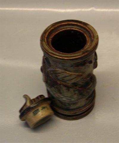 Kongelig Dansk Stentøj 20101 Kgl. Vase med låg 17 cm, fisk i relief, Jais Nielsen, nov 1925
