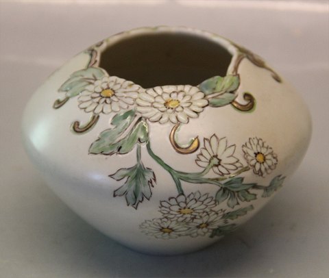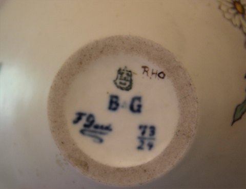 B&G Porcelain B&G 73-24 At Nouveeau Vase with Flowers in relief Signed Fanny Gaarde Decorated with colours ca 9 x 12.5 cm