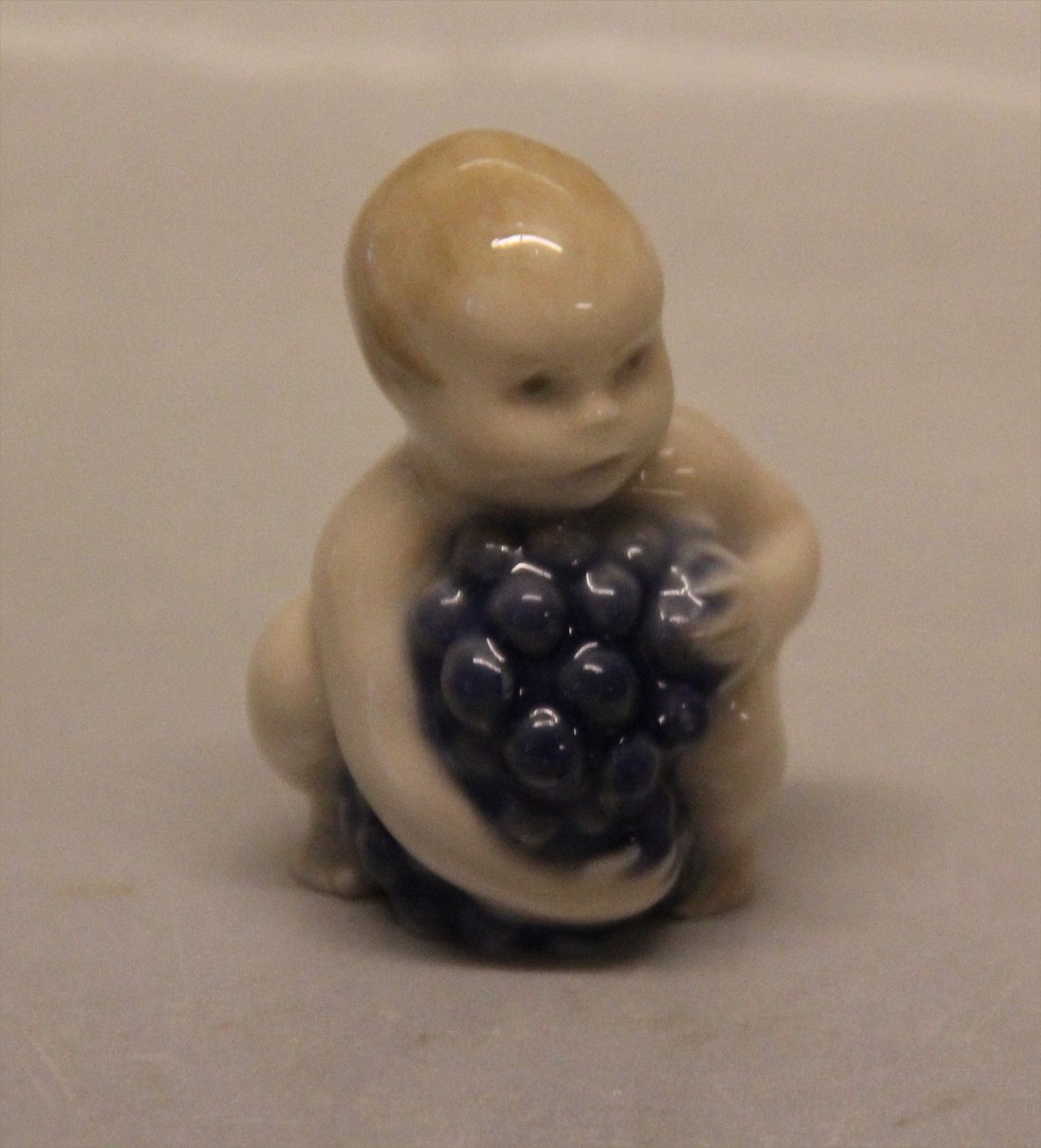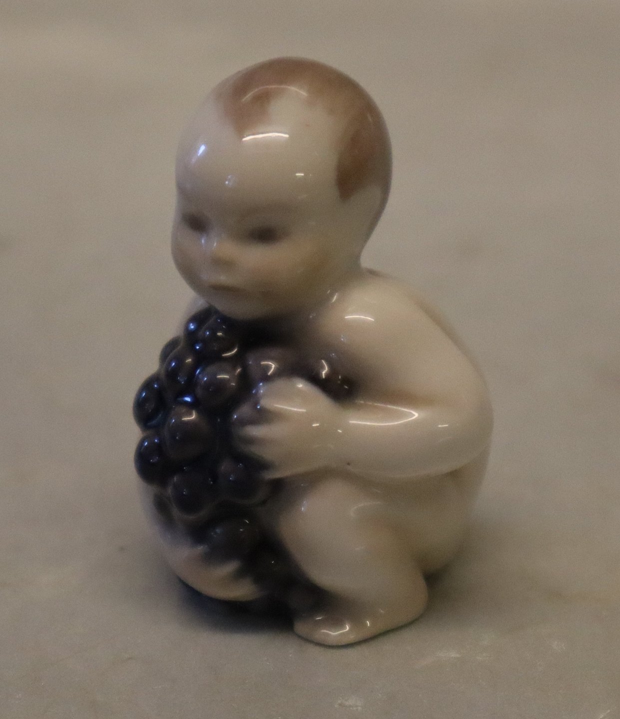 Beskrivelse: Kgl. fra Royal Copenhagen 2323 Kgl. Barn med druer 5 cm V. Waldorff 1923 I hel og fin stand