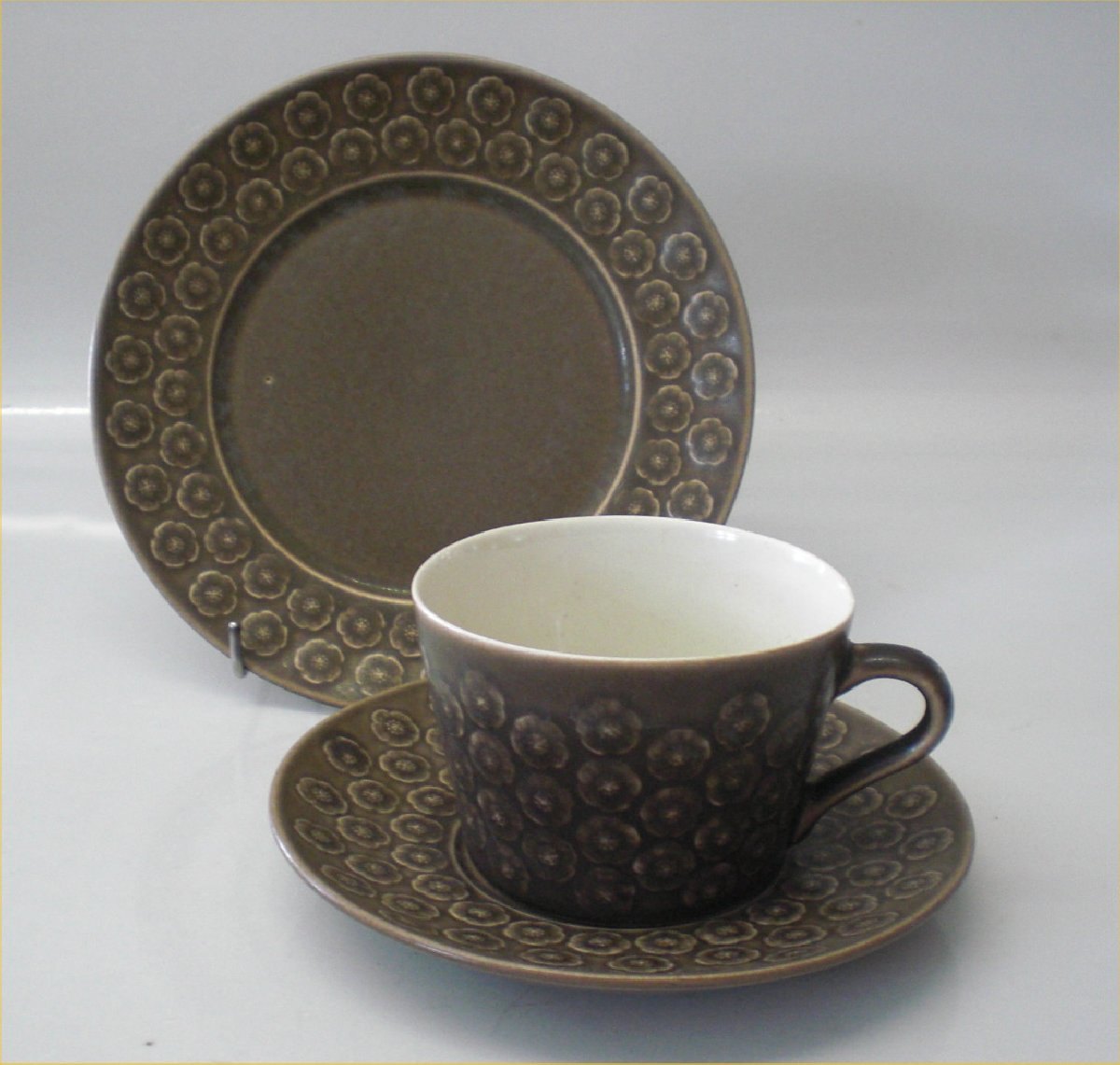 305 Kaffekop og rund underkop 7,5 cm 1,5 dl Umbra Brun Quistgaard Nissen Kronjyden stentøjsstel. I fin og hel stand. Stemplet Kronjyden eller Bing & Grondahl Copenhagen Stoneware: Designet for Kronjyden, Nissen B&G af Jens Harald Quistgaard IHQ