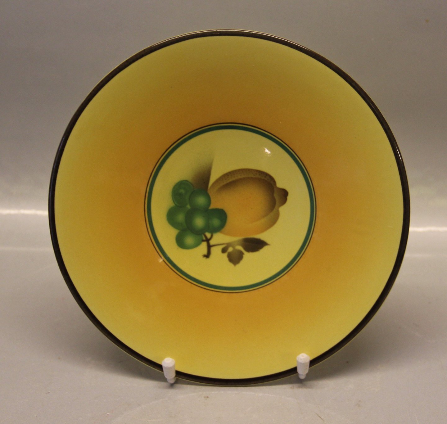 1484-06 Gul melon og grøn drueklasse, Frugttallerken, rund, 20 cm (N. Th.) 1933, Frugtstellet Bellona 0 stk på lager