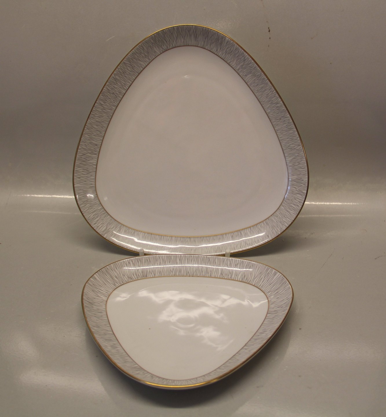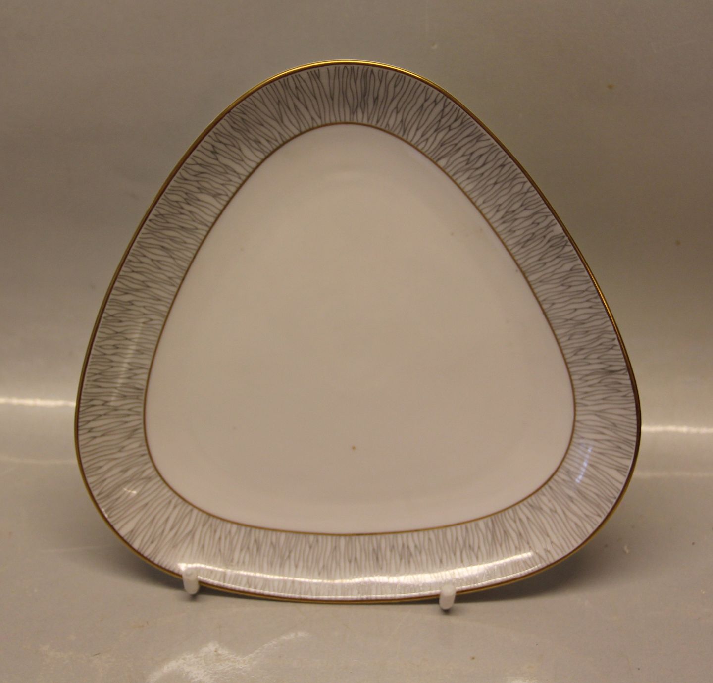 Trekantet fad, stort 26 cm KohINoor Königl. pr. Tettau Tysk Kgl Kaffe- og spisestel med guldkant Porzellan Koh i Noor