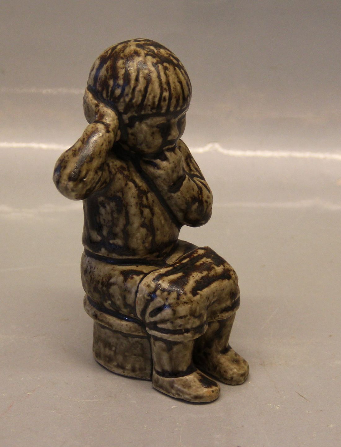 Royal Copenhagen Art Pottery 5395 Boy sitting 15 cm Signed JH for Johannes Hedegaard