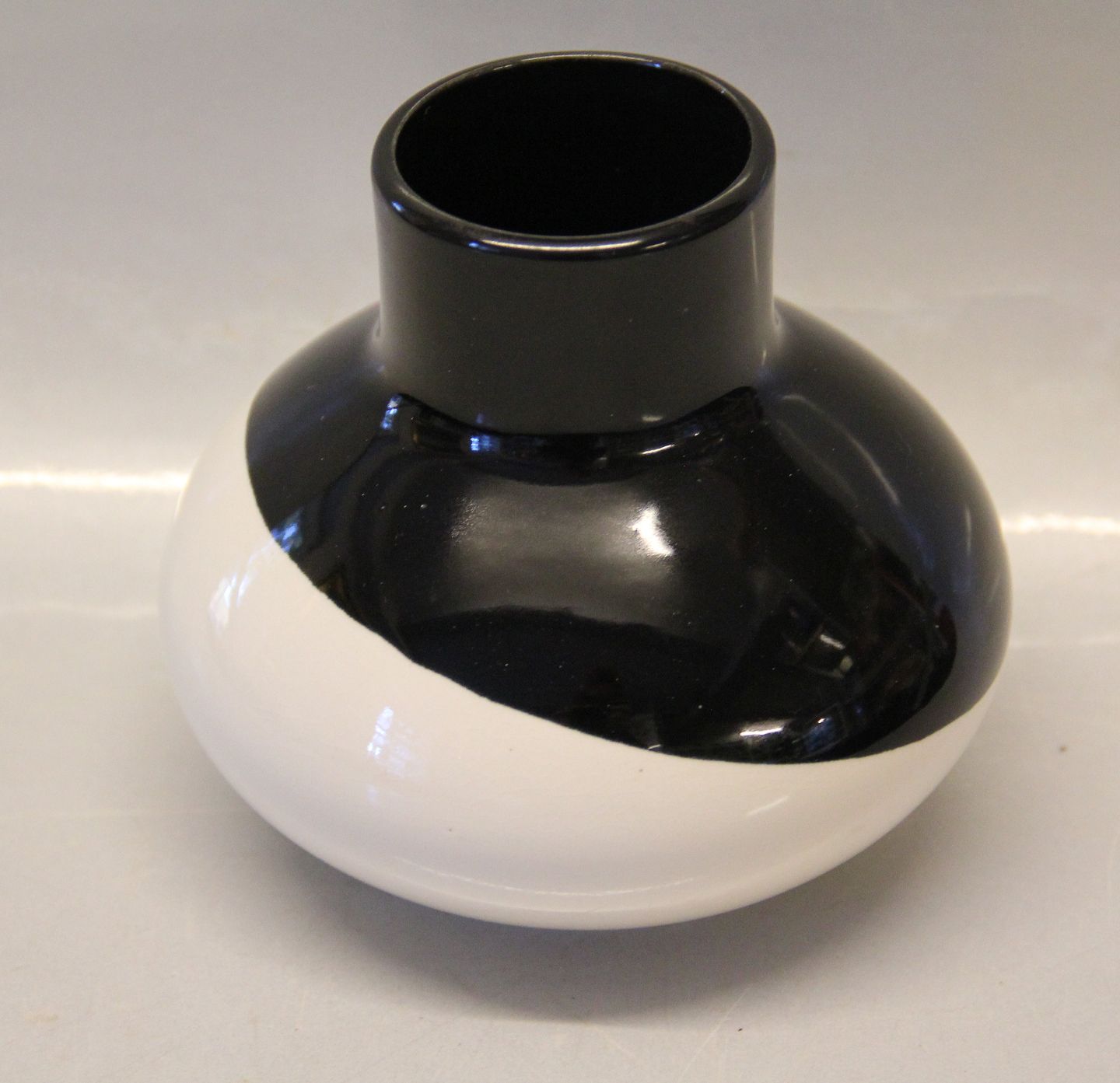 Aluminia Columbine Nils Thorsson 2767 Hvid og sort Columbine, rund vase med kort hals 12 cm