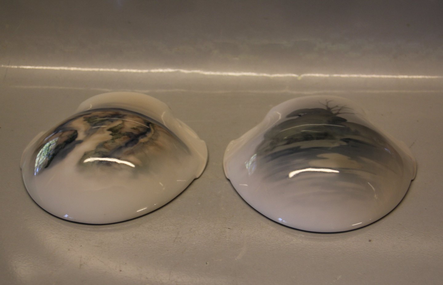 : Bing & Grøndahl B&G 115 Art Nouveau vægvase - 18 x 18 cm buskads ved sø