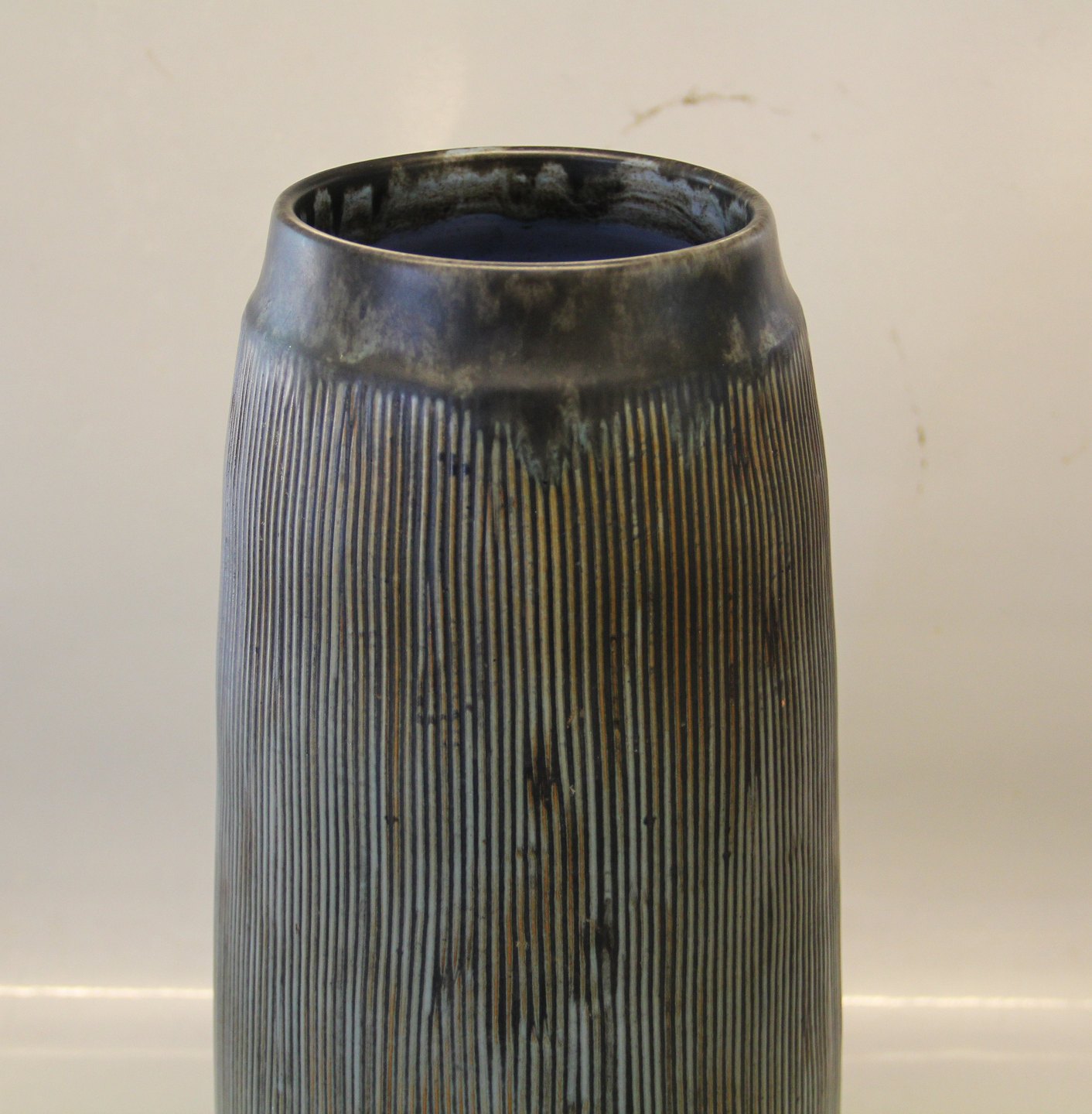 Beskrivelse: Stor Løvemose Riflet grøn vase 38 cm