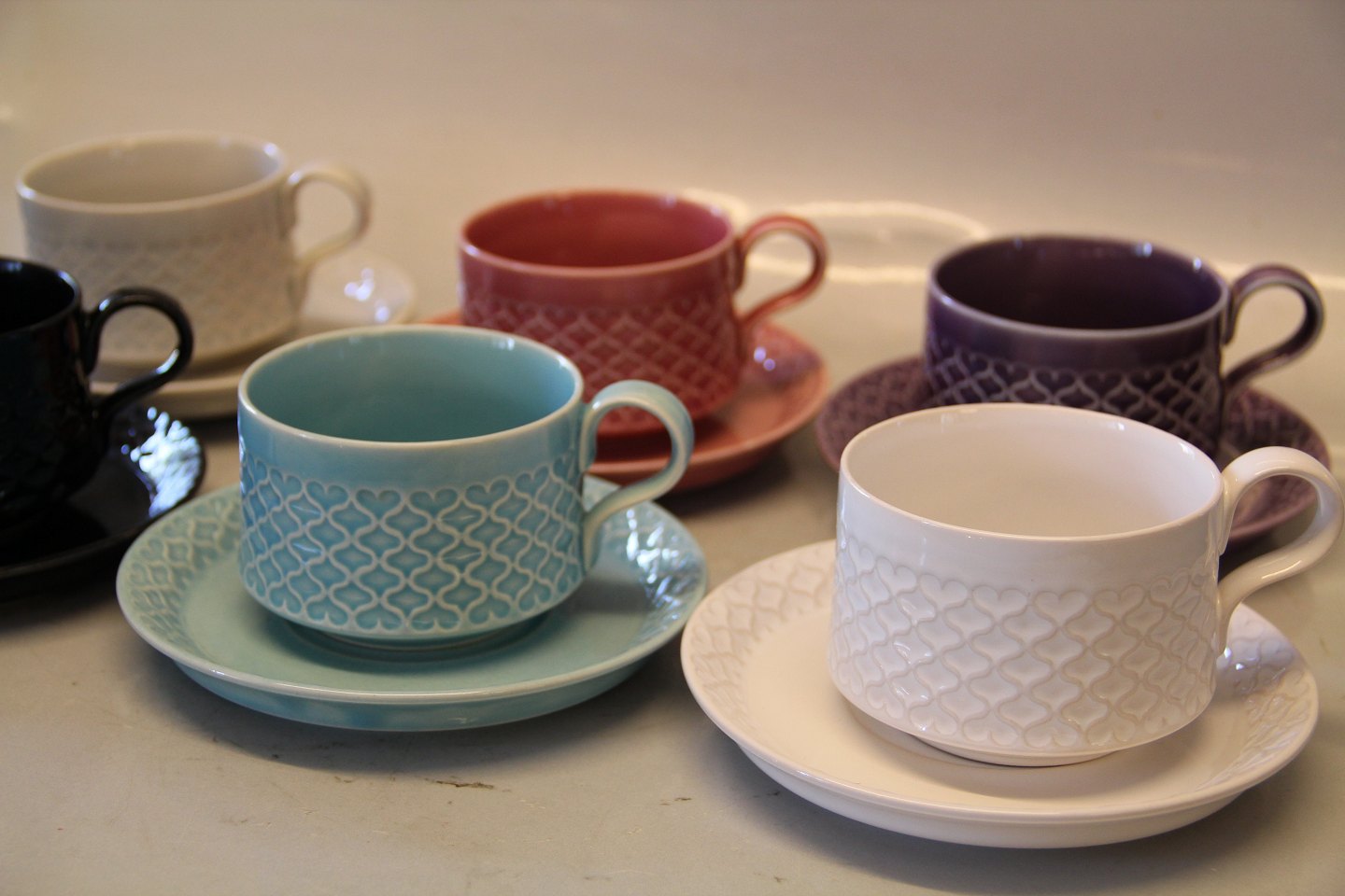 Efterlysning KØBES farvet cordial Grøn, Rød, Pink Lyseblå, sort og hvidt Bing & Grøndahl Cordial Quistgaard for B&G / Nissen Kronjyden Stoneware