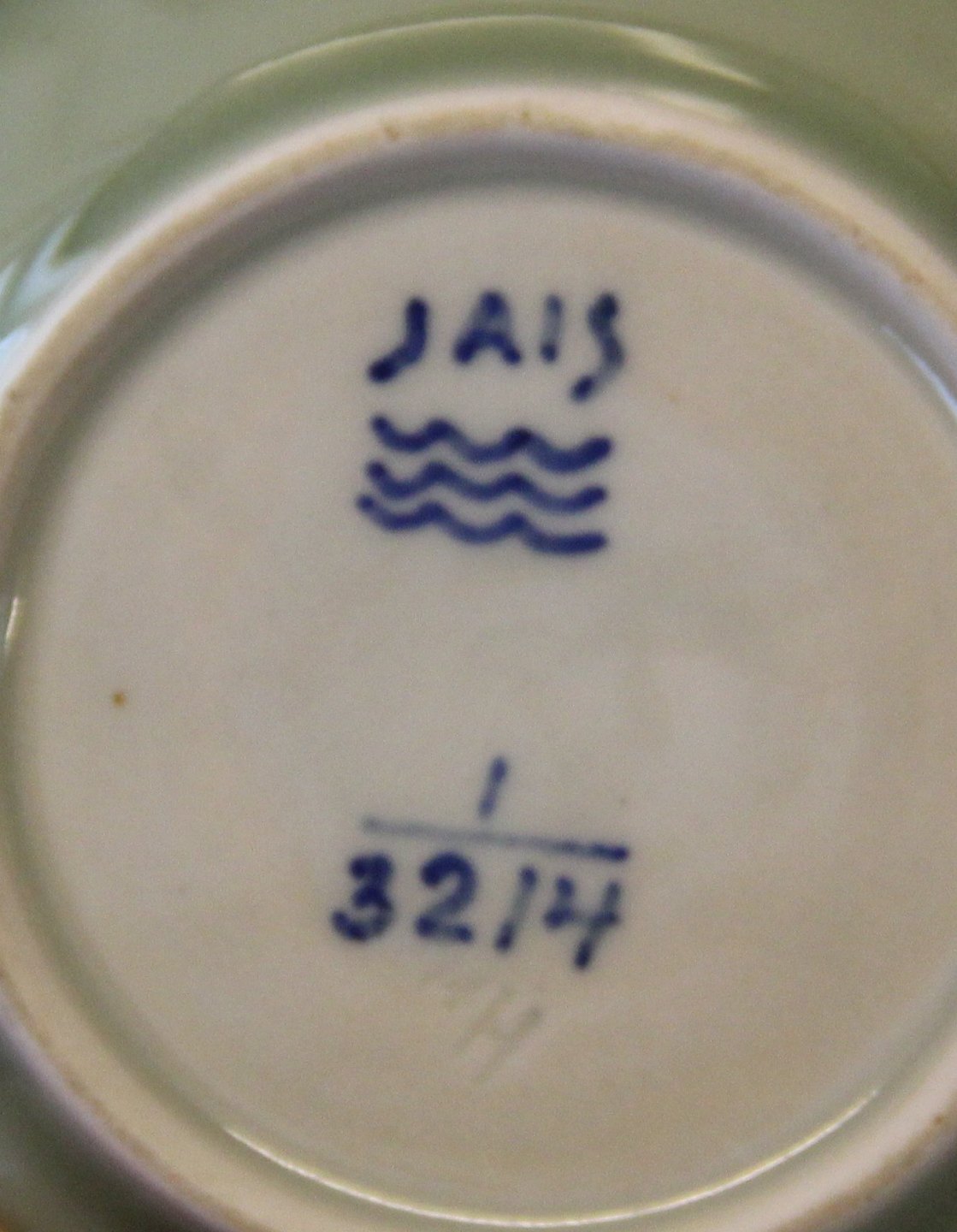 Beskrivelse: Royal Copenhagen stentøj 3214-1 Kgl. Signeret Jais Nielsen Celadon glaseret skål med logo; Den Kongelige Porcelænsfabrik 11 cm I fin og hel stand Handlerskilt - Forretningsskilt