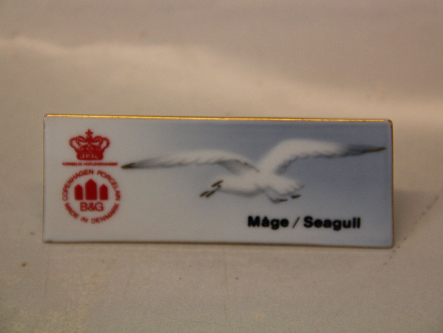 Handlerskilt Bing & Grøndahl Mågestel med guldkant. I hel og fin stand