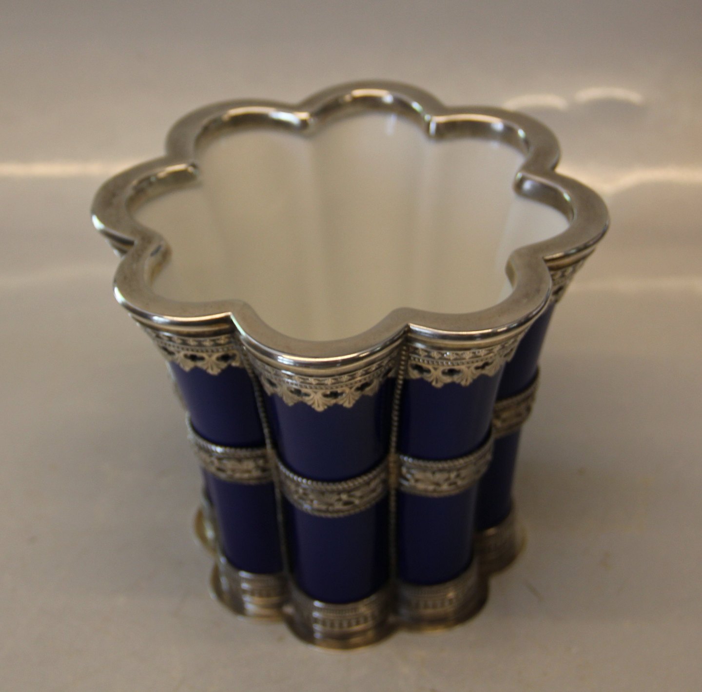 Beskrivelse: Kgl. 3374 Kgl. Margrethebæger Blå 12 x 14 cm Sølvmontering Sterling Silver fra Anton Michelsen Copenhagen fra Royal Copenhagen I hel og fin stand