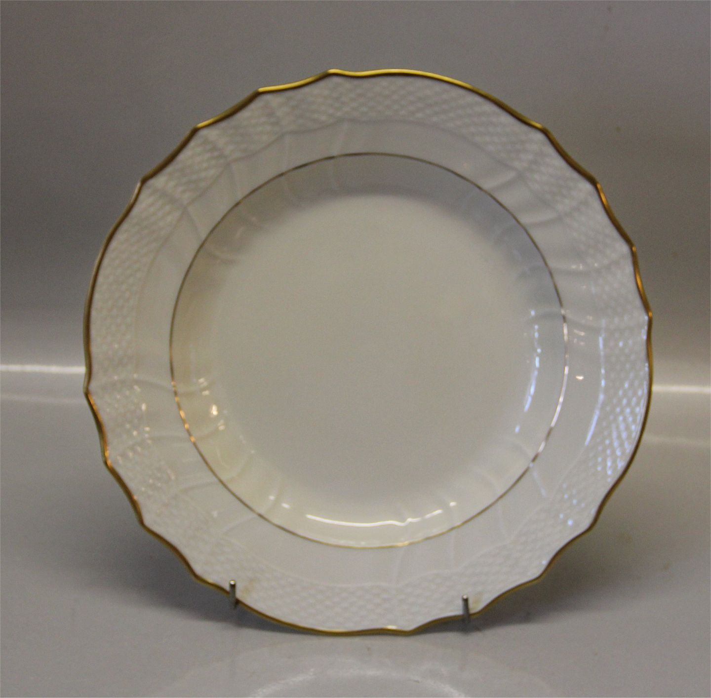 1621-878 Tallerken, flad (624) 25 cm # 878 Kongelig Dansk svejfet stel Crème med ENKELT guldkant Royal Copenhagen I fin og hel stand