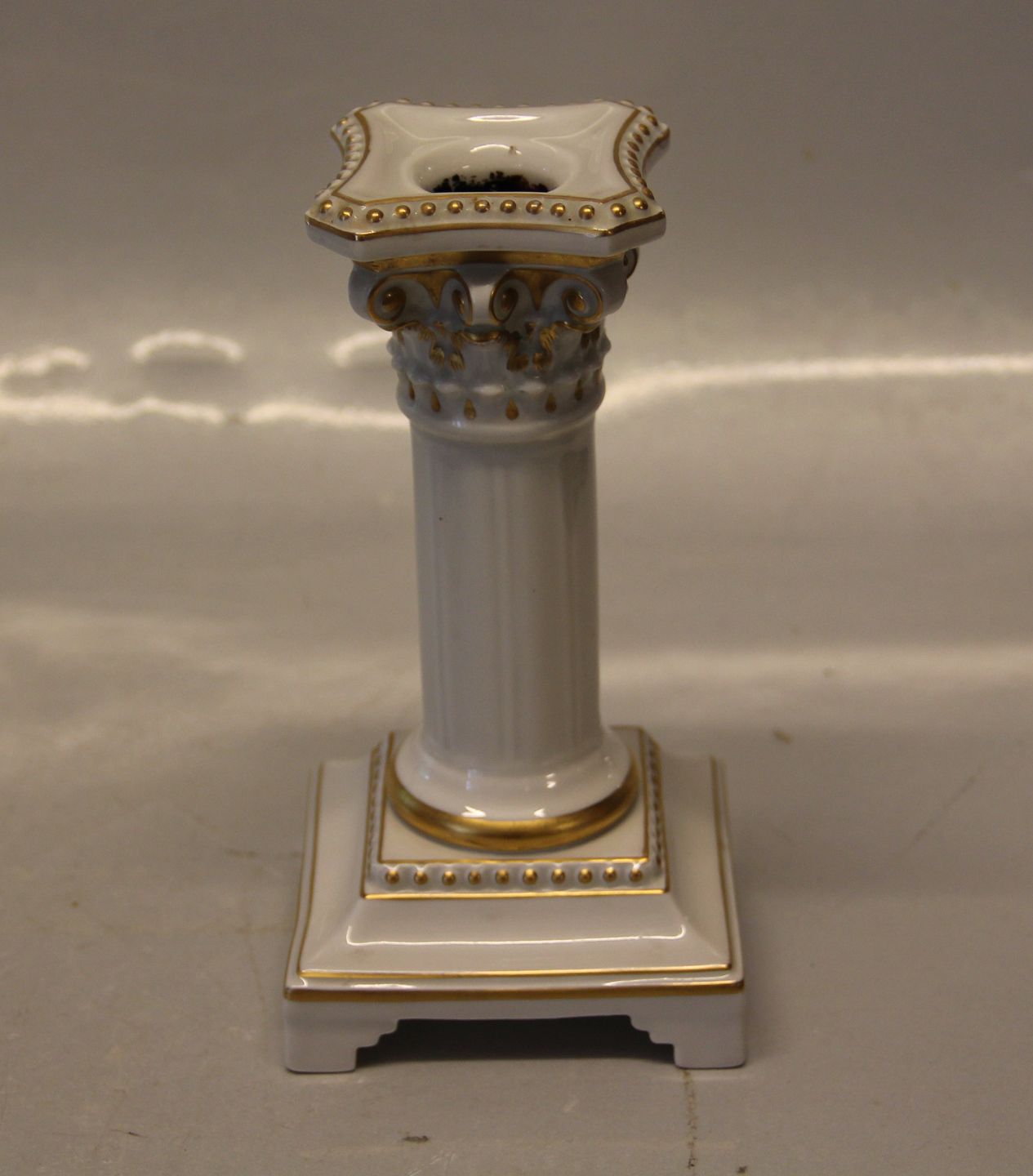 Description: Pair of Royal Copenhagen 12366 RC Candlestick on Column 17 cm Juliane Marie decorated with gold In mint and nice condition Juliane Marie