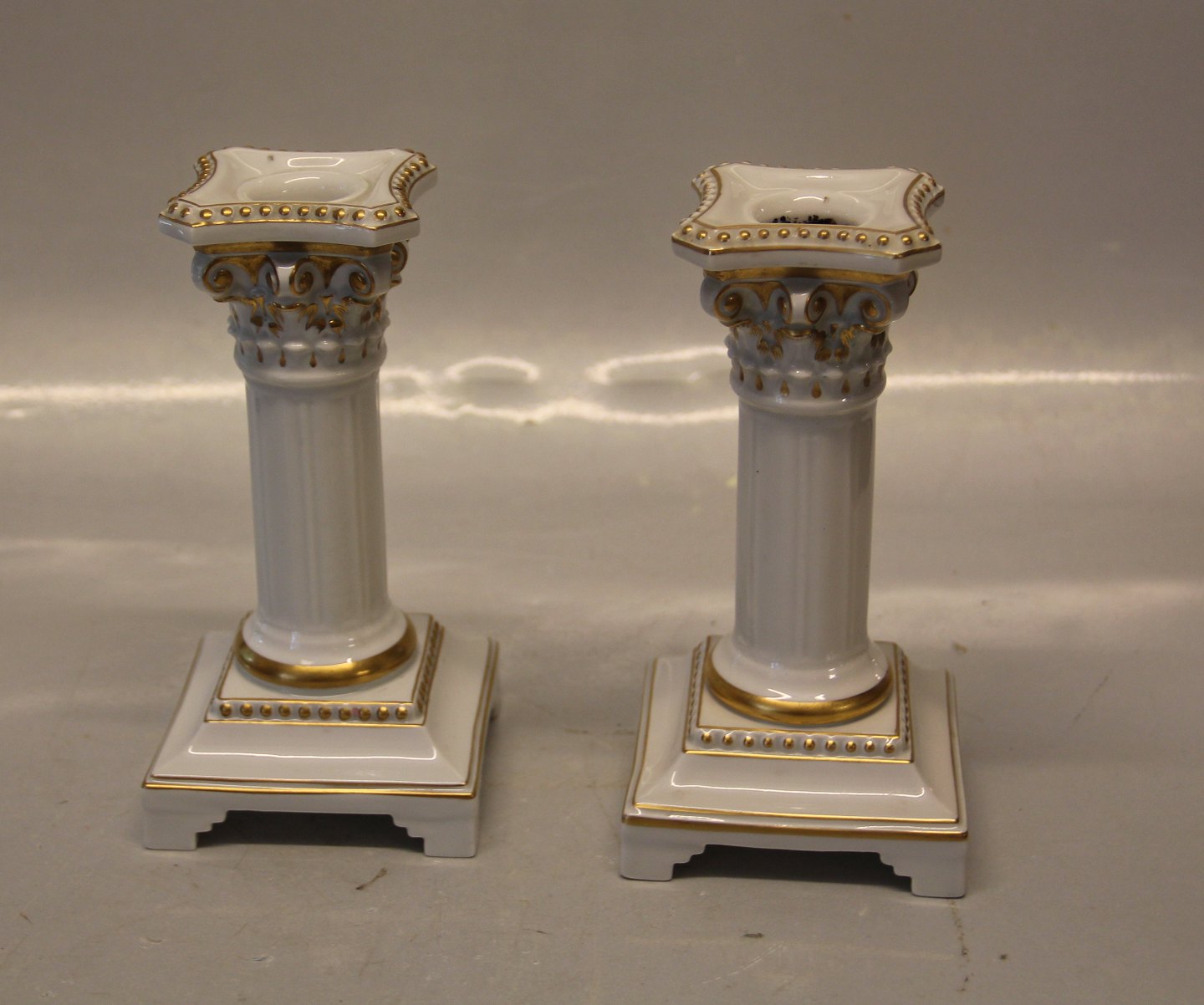 Pair of Royal Copenhagen 12366 RC Candlestick on Column 17 cm Juliane Marie decorated with gold