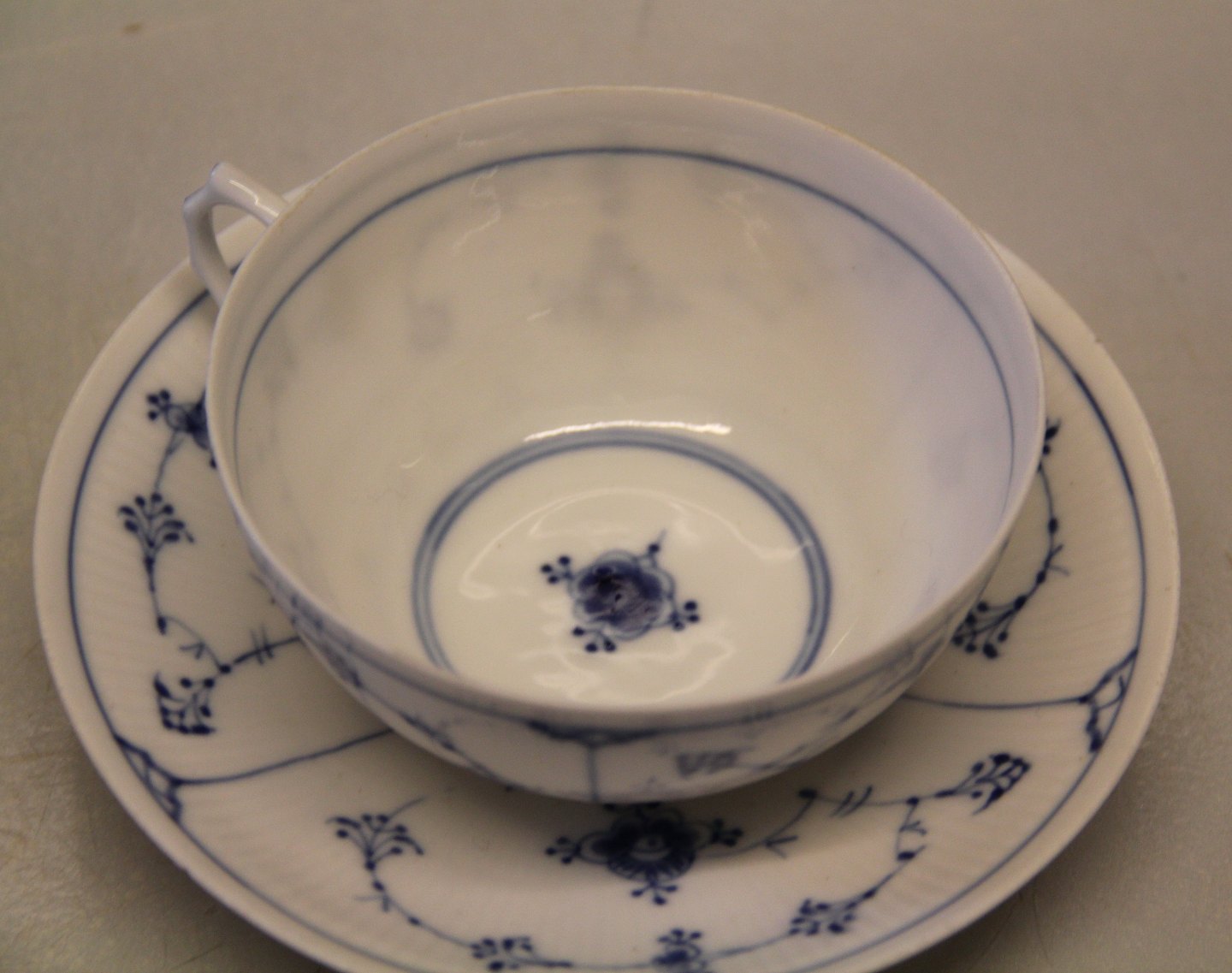 108 ? Gl. Tekop 4.7 x 9.8 cm og underkop 14.5 cm med indvendig blomst Bing & Grøndahl Musselmalet på riflet porcelæn. I fin og hel stand