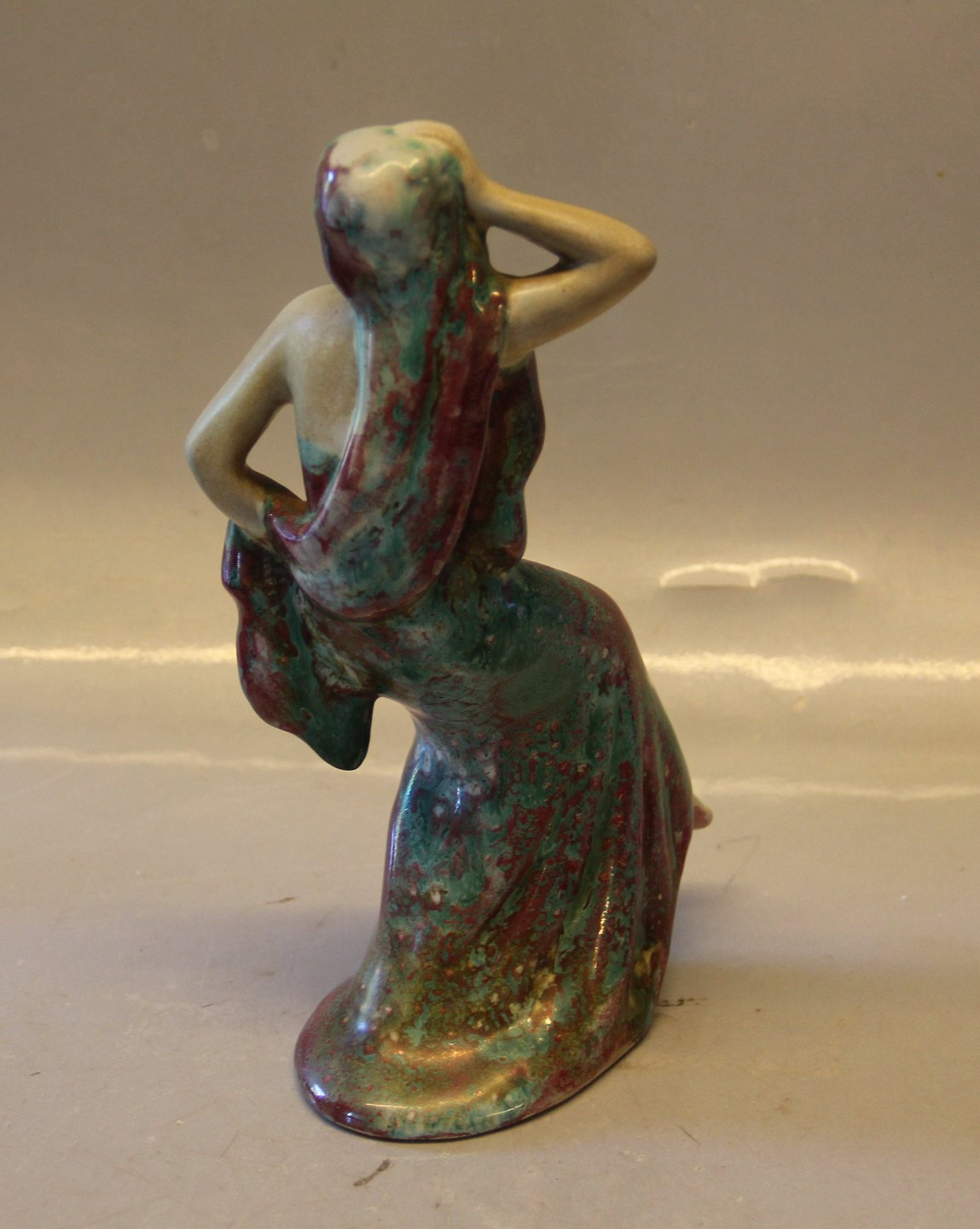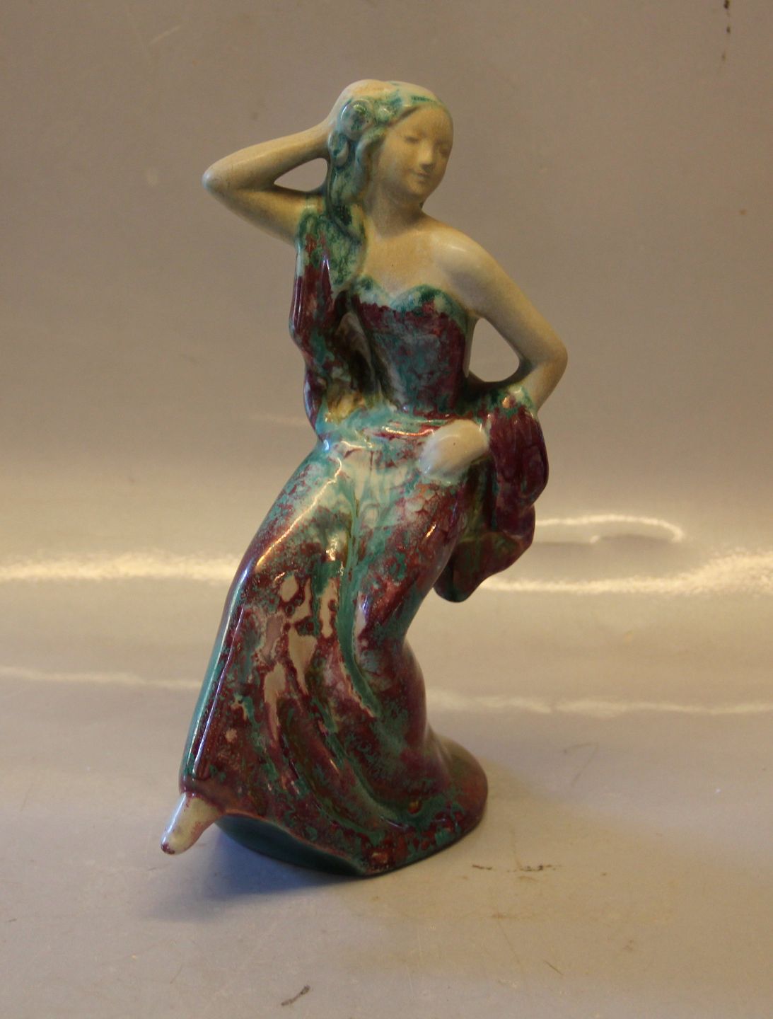 Beskrivelse: Michael Andersen Bornholm 5236-1 Dansende kvinde 24 cm Signeret E & NX Glarseret keramik MA