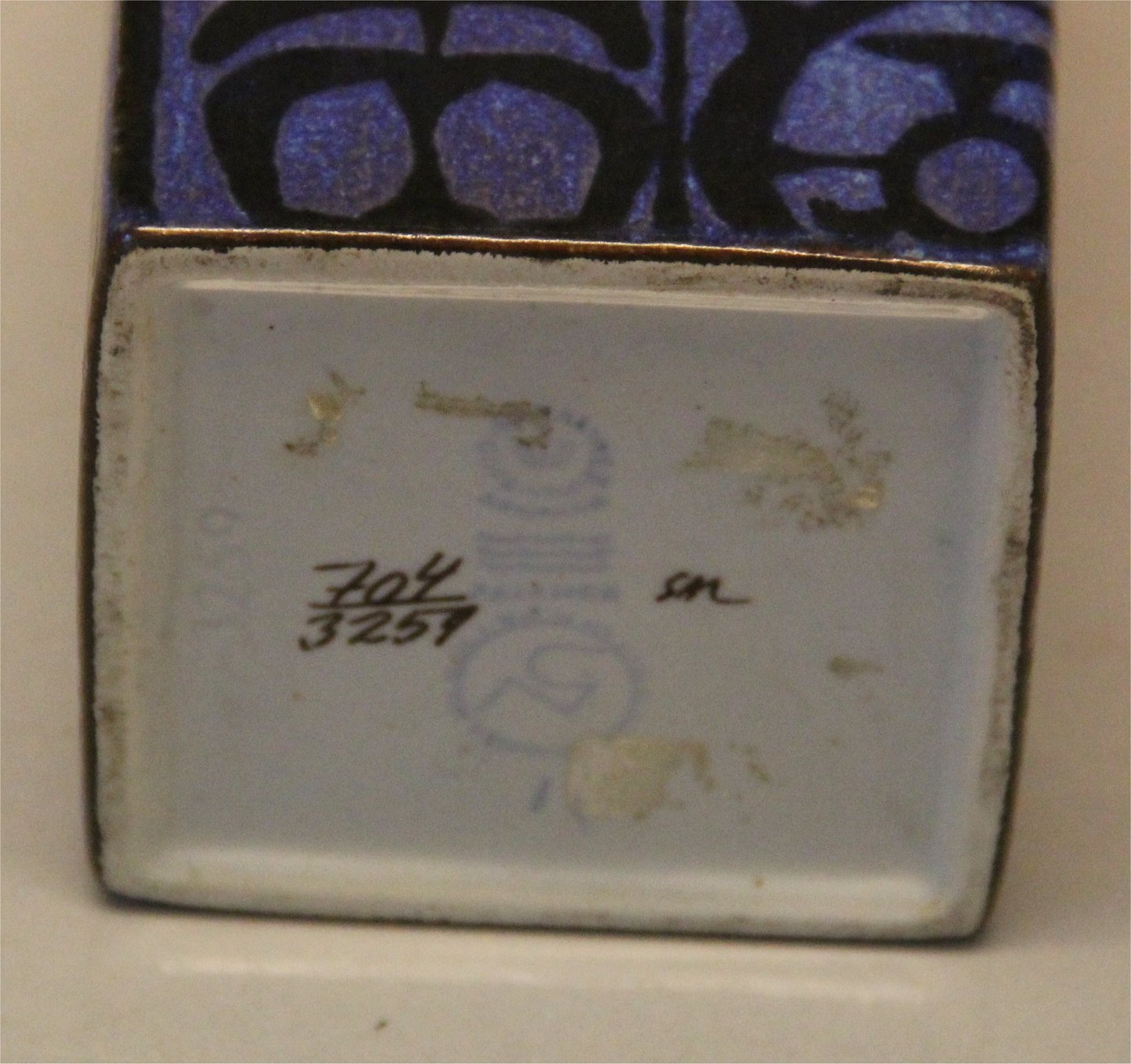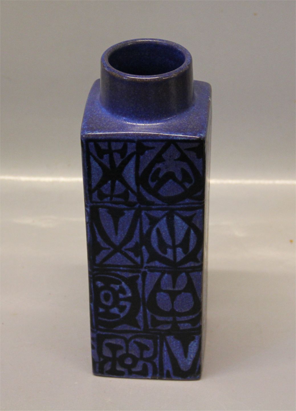 RC Faience 704-3259 Dark Blue, square Vase 22.5 x 7.7 cm Baca, Nils Thorsson Royal Copenhagen Aluminia Faience Blue Baca N. Th