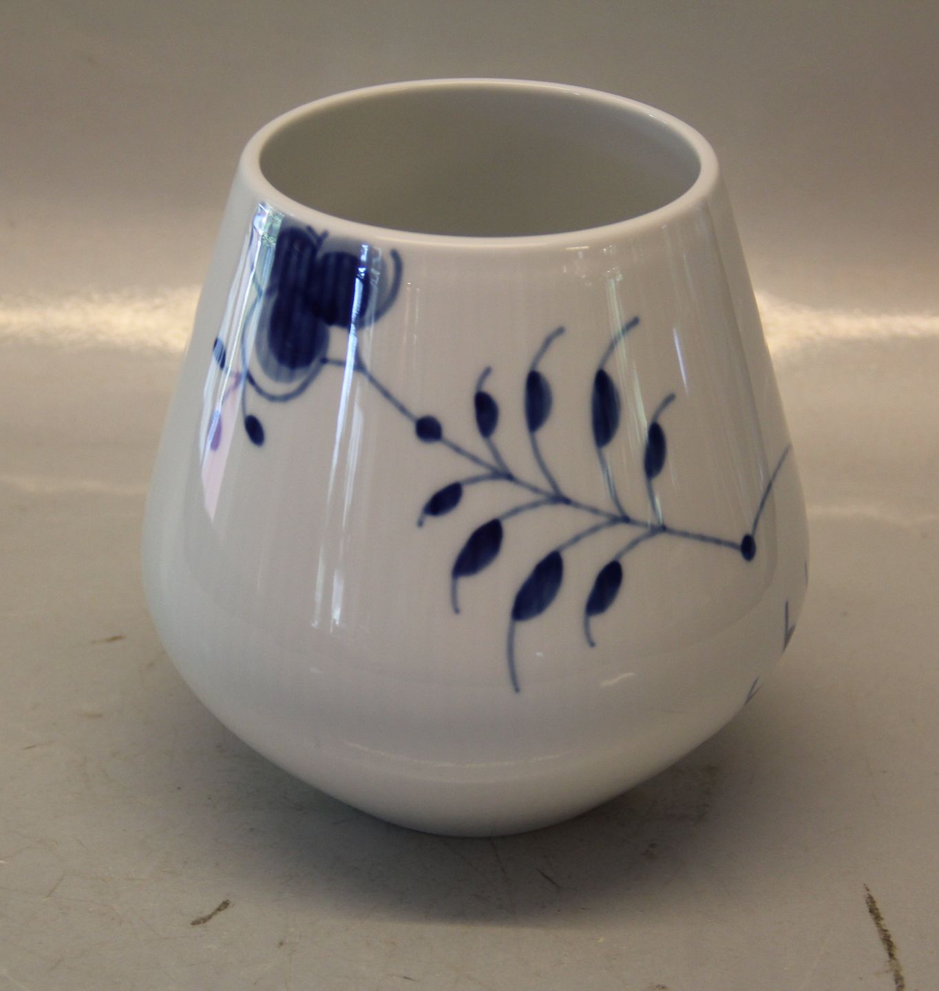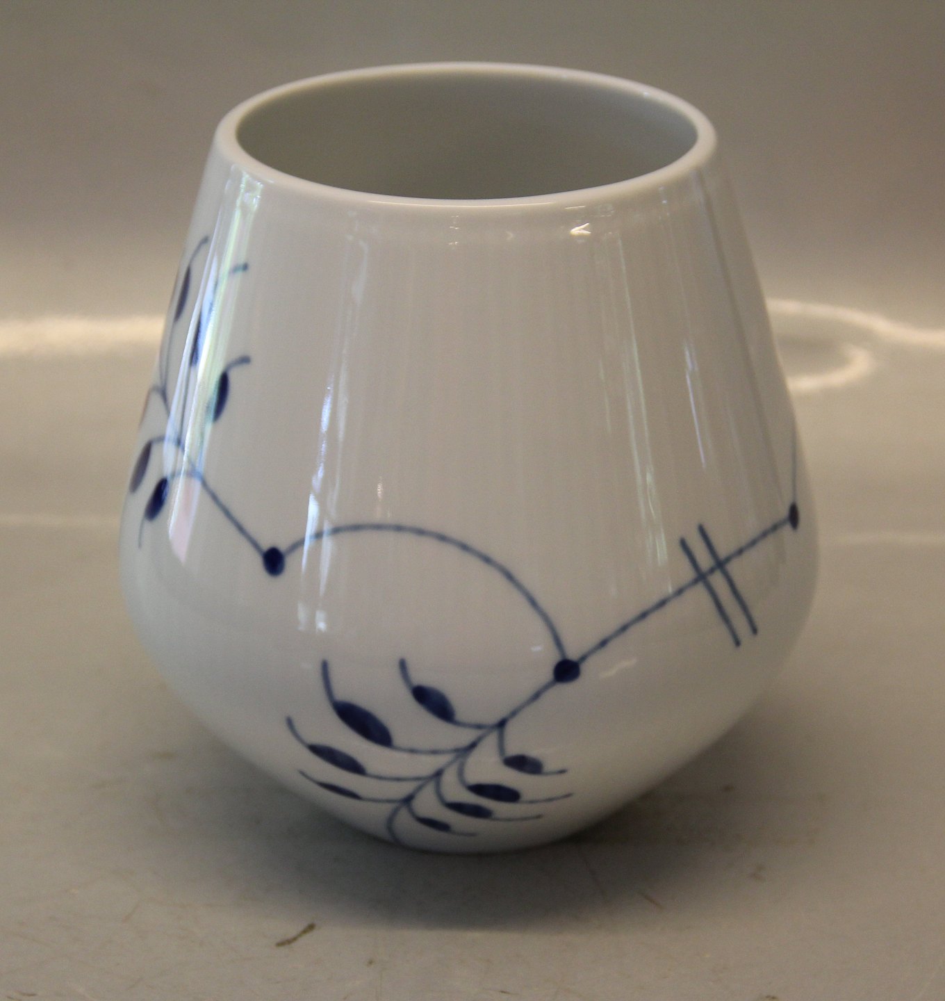 681-1 Vase, medium, 15 cm (1016901) Royal Copenhagen MEGA Musselmalet riflet . Muselmalet I fin og hel stand. Passer godt sammen med andre blåmalede spise- og kaffestel Design: Karen Kjældgård-Larsen Megamussel