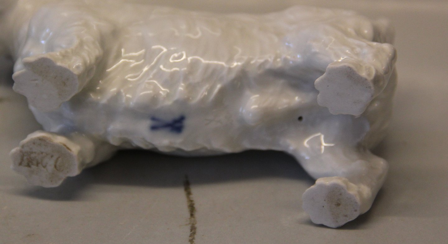 Meissen Blanc de Chine porcelænshund Skye Terrier 12.5 x 19 cm Design E. Oehme