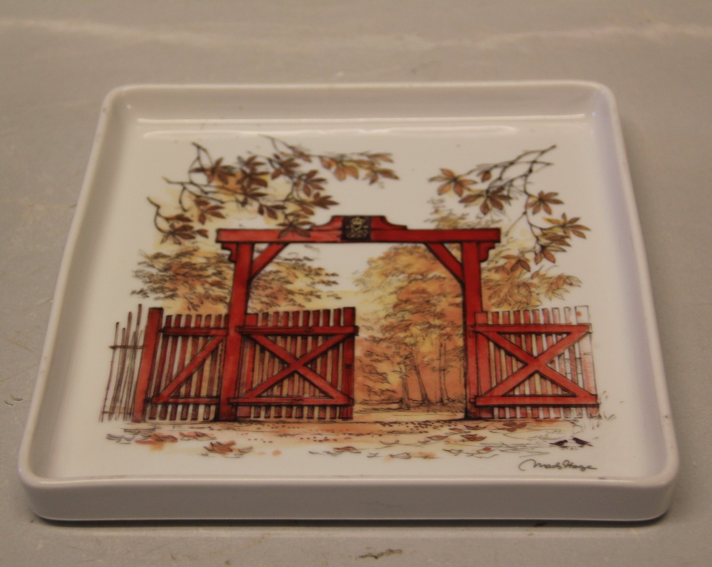 B&G Porcelain B&G 363 - 7030 Square Tray The Red fance 19.5 cm Dyrehaven north of Copenhagen