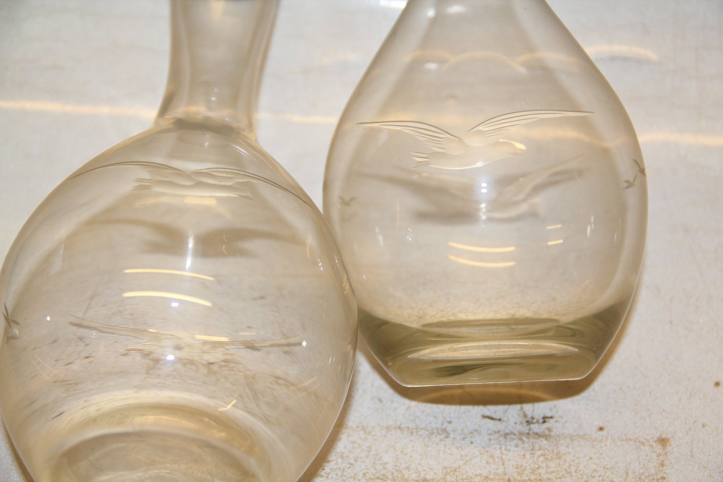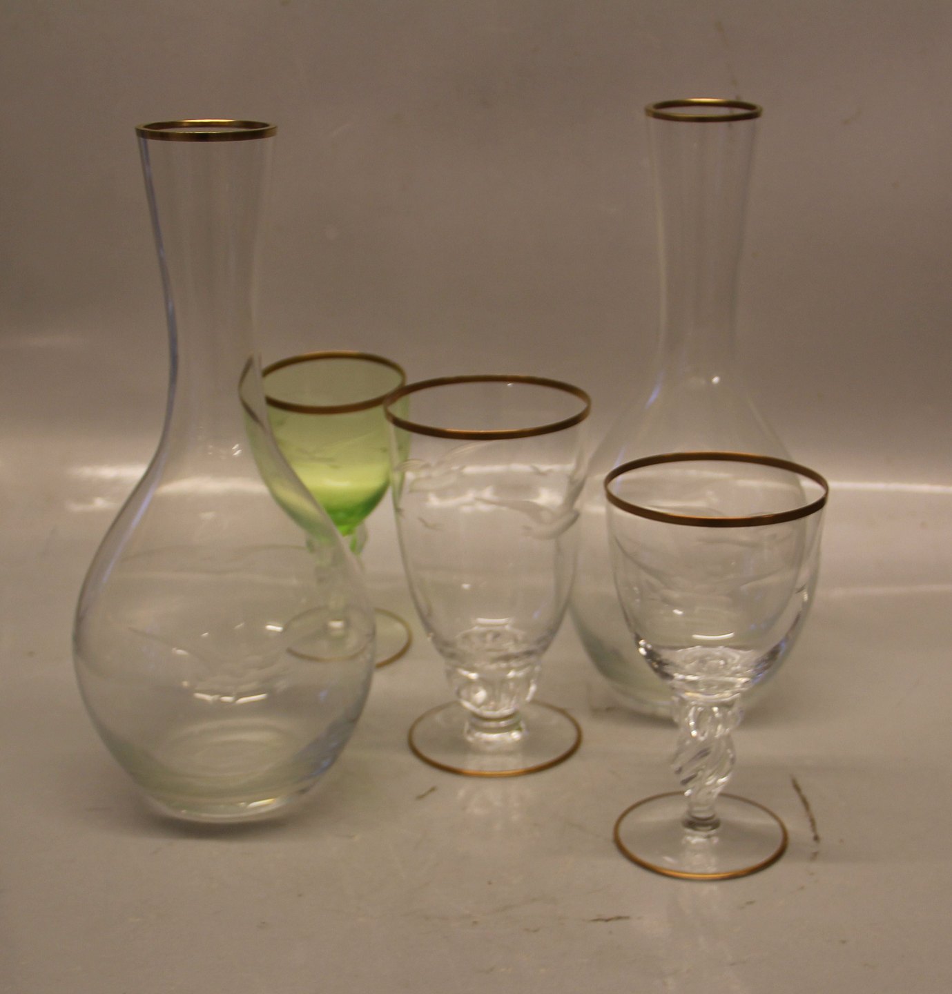 Karafler til Mågeglas fra Lyngby glasværk ca 24.5 cm med guldkant og slebne måger