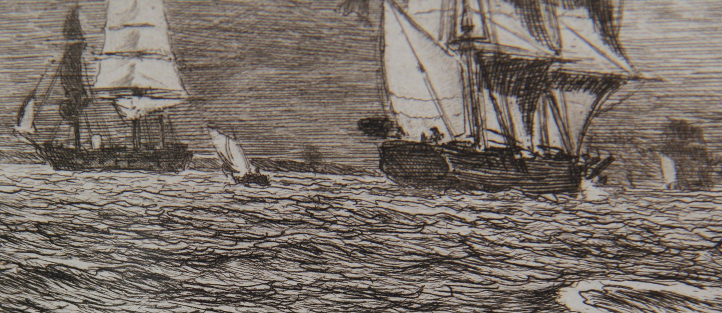 Radering: Carl Locher Marine Kronborg 29.3 x 38 cm inklusiv ramme