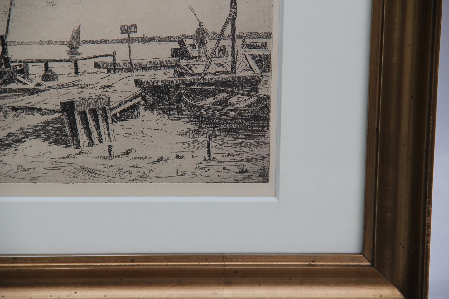 Etching: Habour motif 29.5 x 37 cm including the golden frame