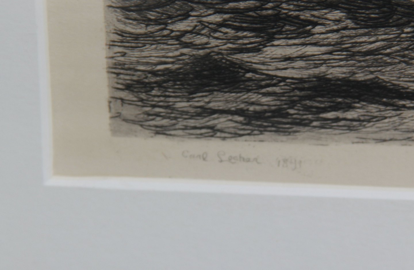 Radering: Carl Locher 1881 Marine 46 x 41 cm inklusiv guldramme
