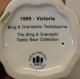 Description: B&G 1999 Victoria 10.5 cm with red jar Sheilah Beckett Bing and Grondahl Marked with the three Royal Towers of Copenhagen. Bing & Groendahl In mint and nice condition The Bing & Grøndahl Teddy Bear Collection Annual Figurines Victor and Victoria's Family