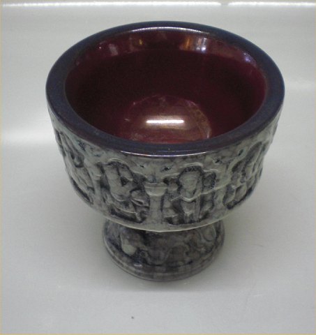 Description: Michael Andersen Bornholm Baptism Cup 12 x 12 cm Grey glazed - red lustre glaze inside