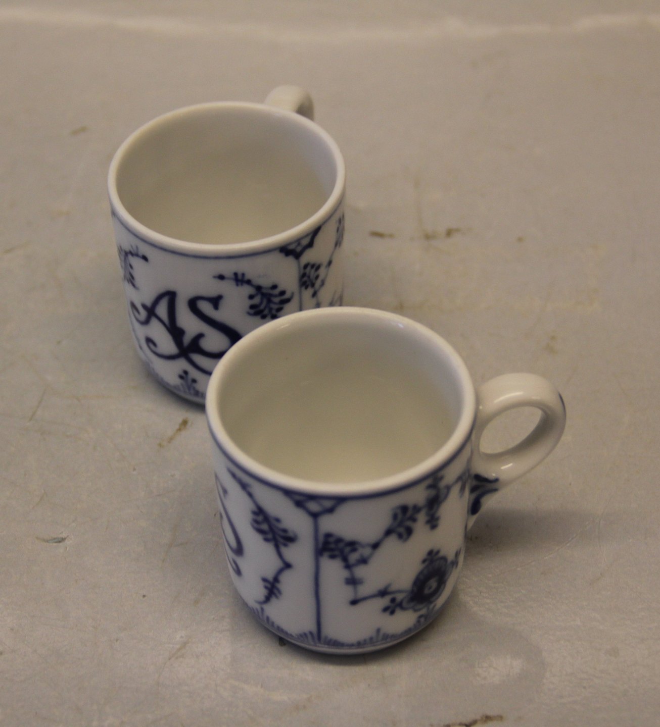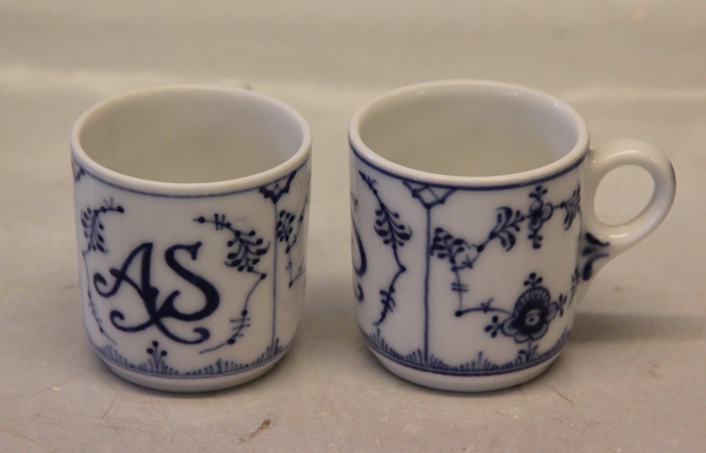 Kongelig Dansk Porcelæn Musselmalet 2146-1 Kop 5,5 x 5.5 cm cylinderformet (447), tyk. Hank som 2091 - ingen underkop. Med LOGO AS