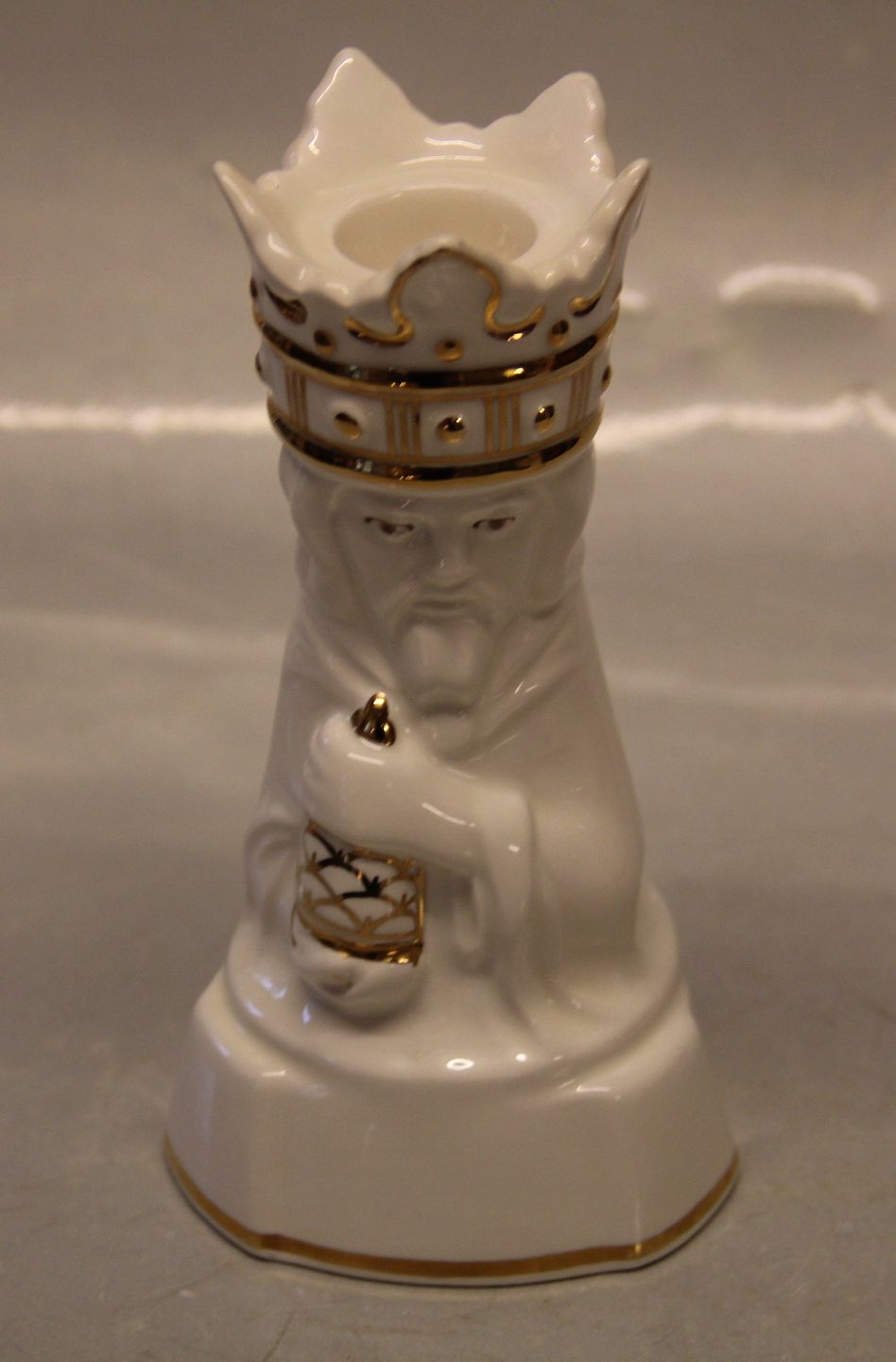 Aluminia 0008-1160 The Magis; Christmas Candlestick one of Three Wise Men, Melchior 14.5 cm Rasmus Harboe 1922, White with gold (333-3059) Faience