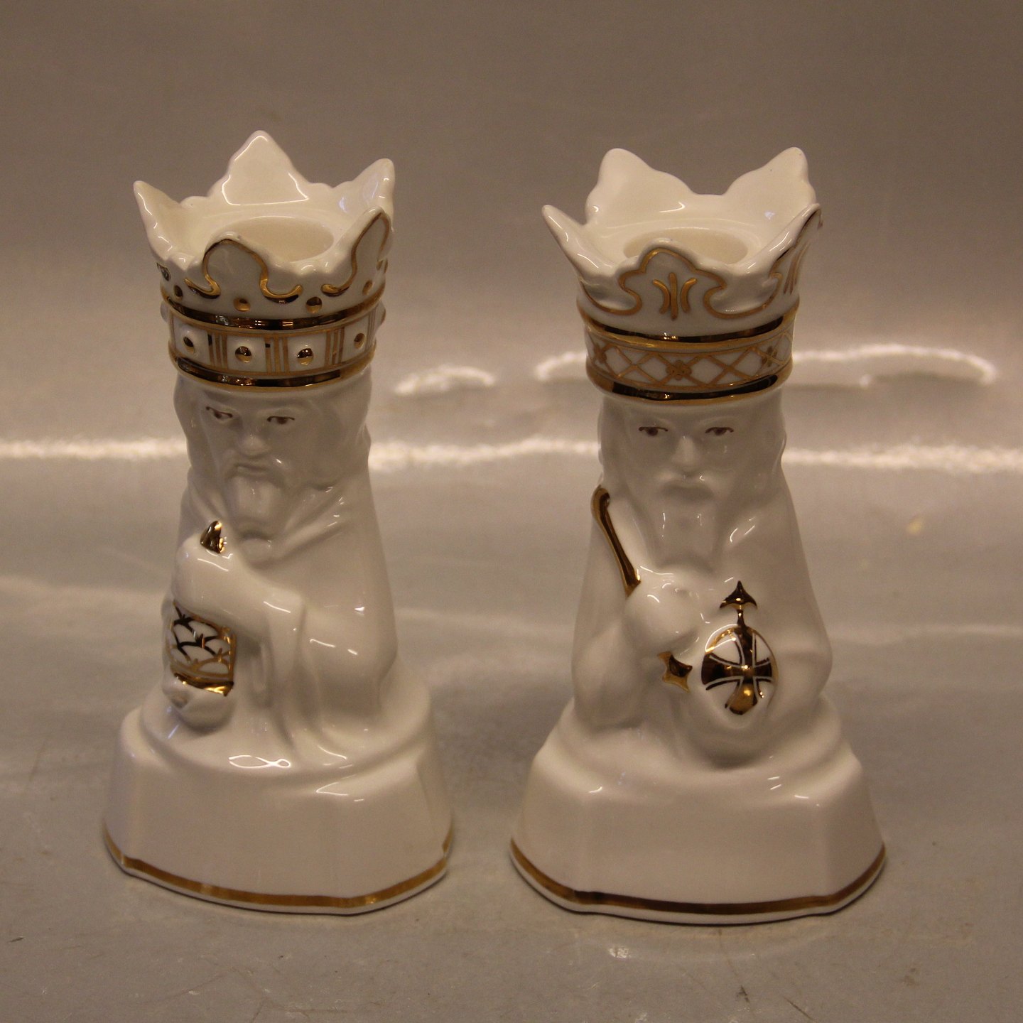 0008-1160 The Magis; Christmas Candlestick one of Three Wise Men, Melchior 14.5 cm Rasmus Harboe 1922, White with gold (333-3059) Faience Royal Copenhagen Aluminia Faience
