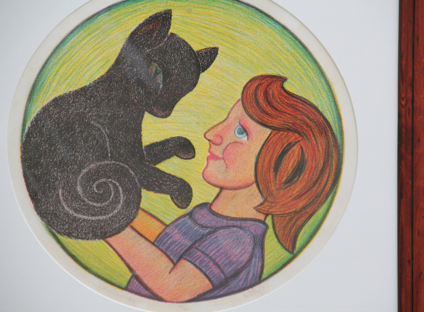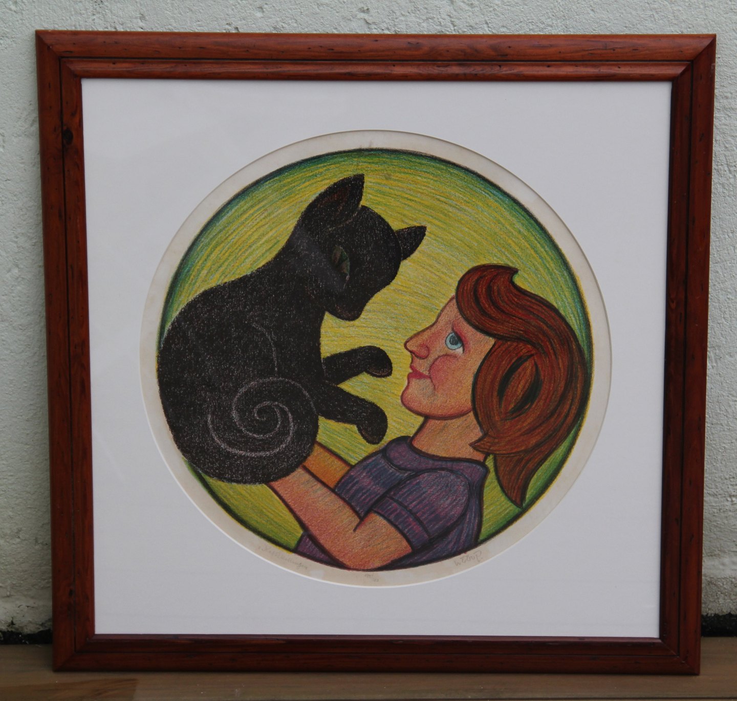 Beskrivelse: Heerup Litografi med "Kattekilling" 64 x 64 i flot træramme Signeret Herup