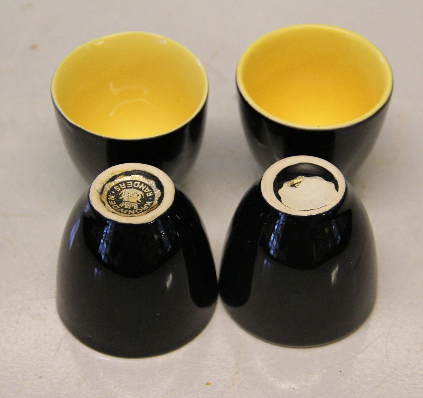 Æggebæger 4.8 x 4.8 cm Congo Kronjyden retrostel i gult og sort. l I fin og hel stand.
