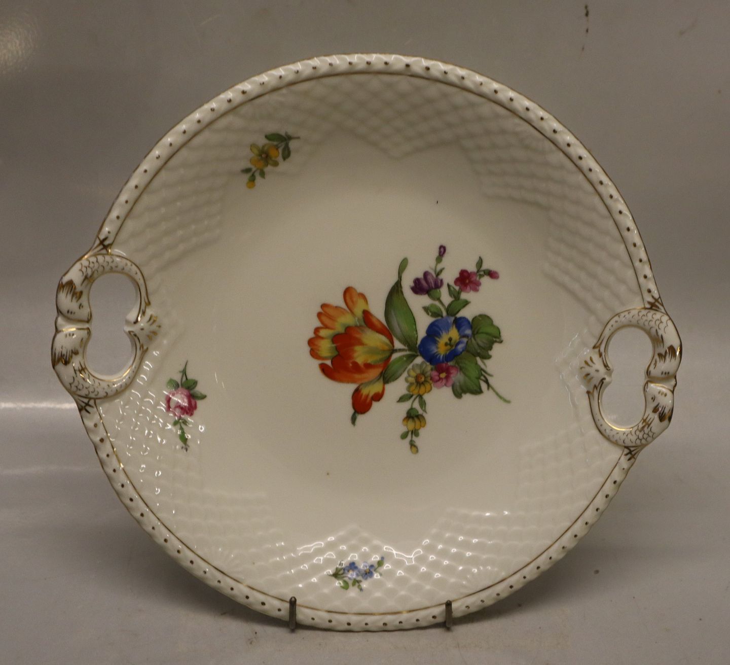 101 Fad med hank 23 cm Bing & Grøndahl Saksisk Blomst Creme på creme porcelæn I fin og hel stand