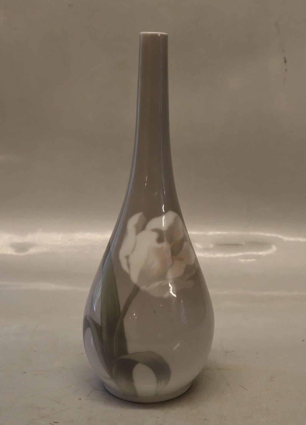728-61 Kgl. Vase med hvid Iris 23.8 cm maler 99 præ 1923 Kongelig Dansk porcelænsvase