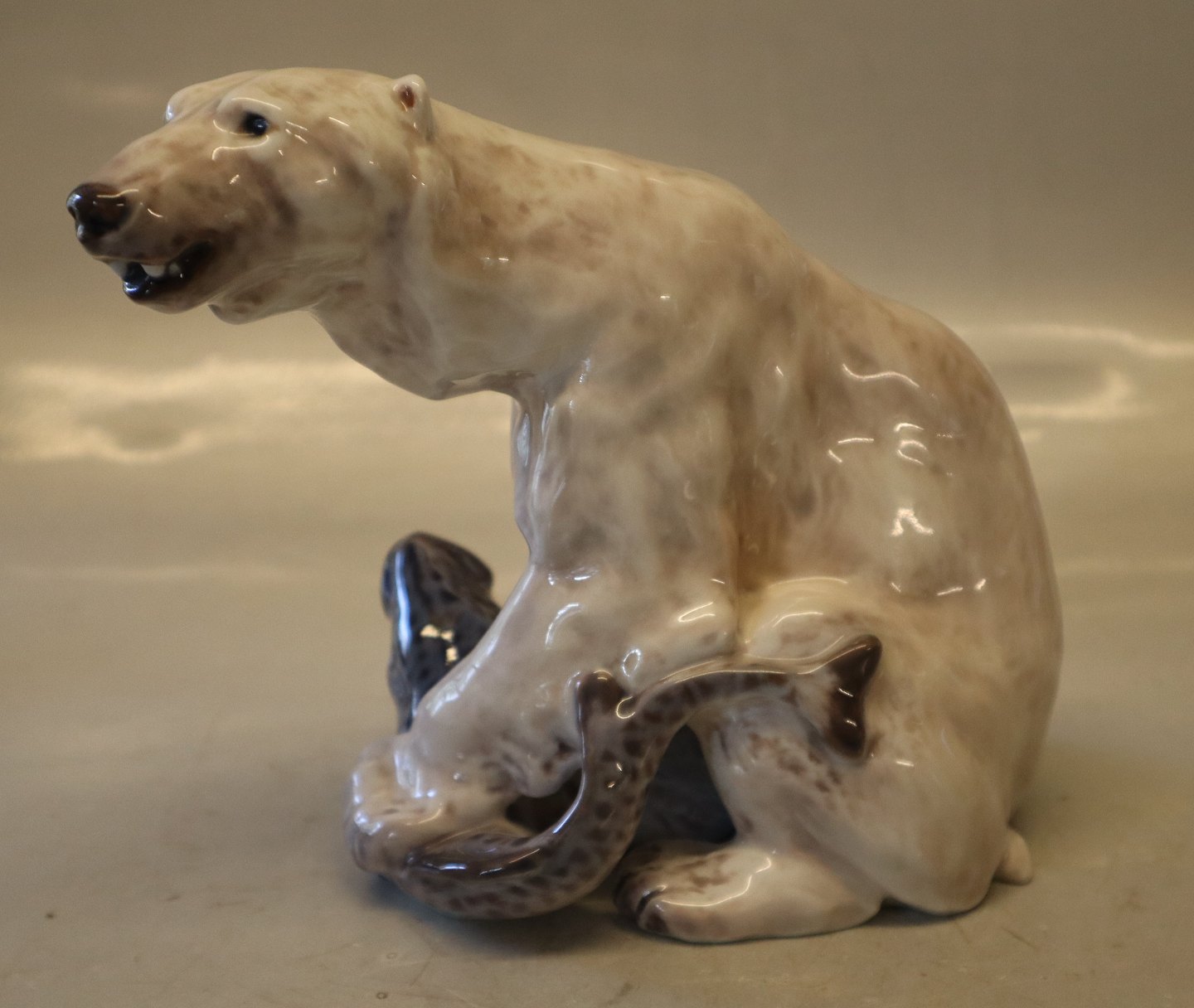 Dahl Jensen figurine 1272 Polar bear with fish (LJ) 18 cm