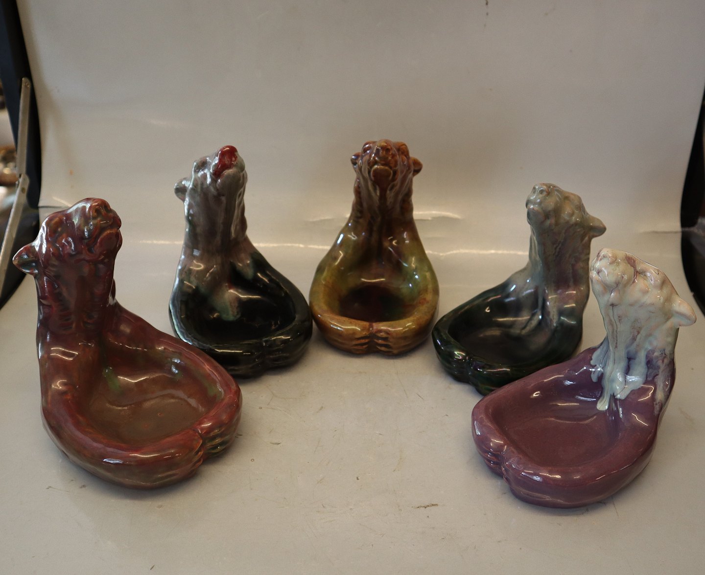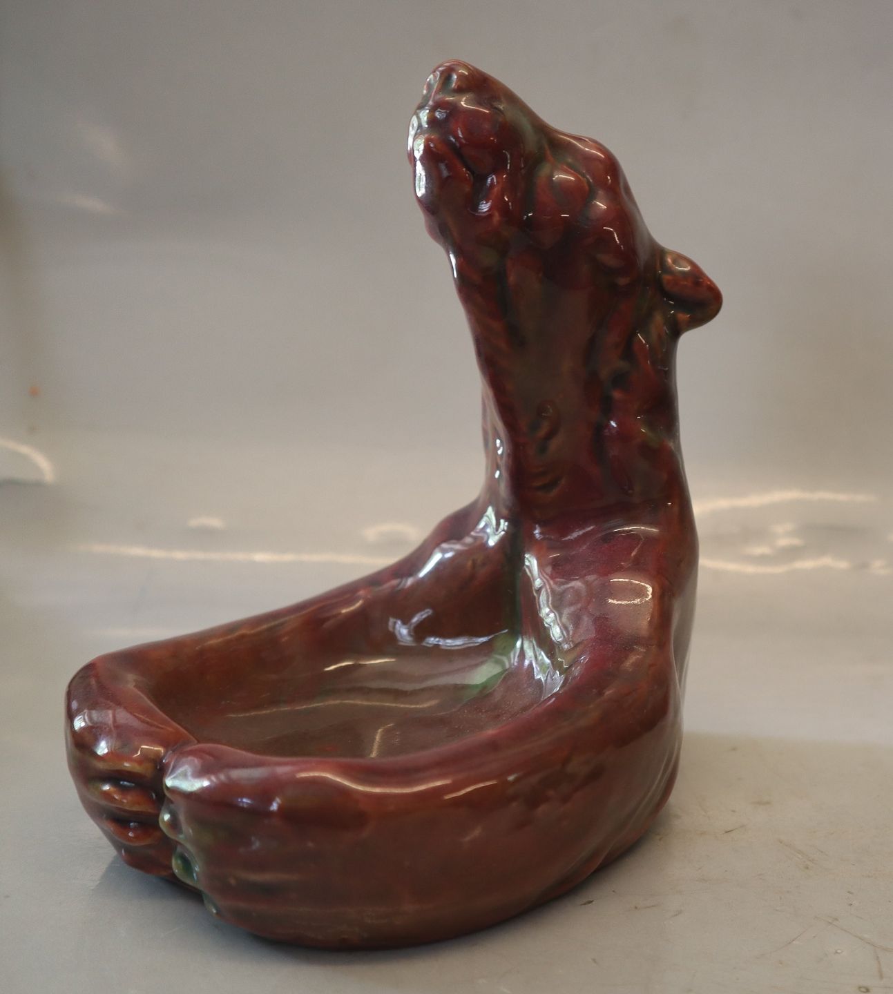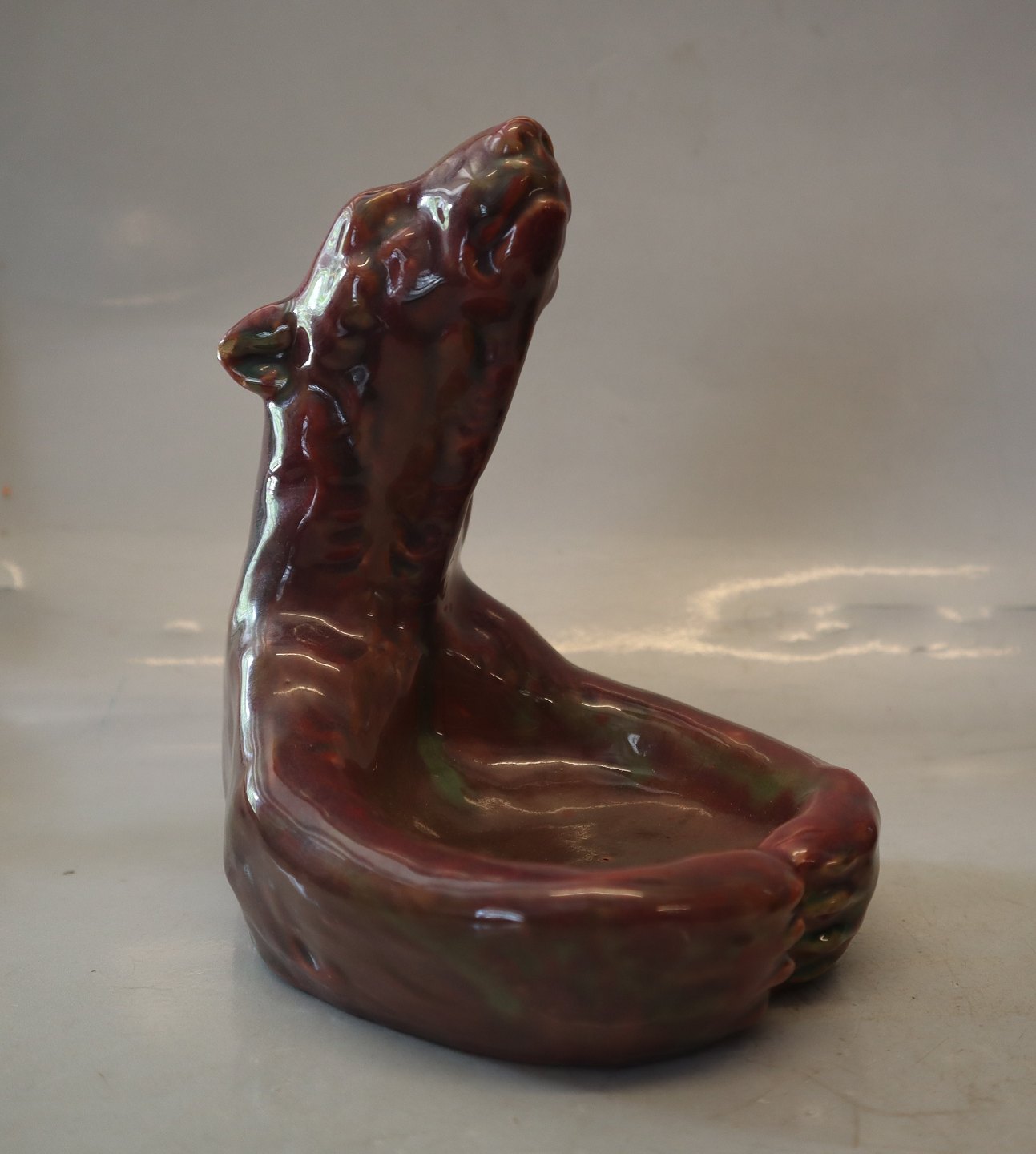 MA.S Majolica Polar bear bowl 16.5 x 14 cm Red luster frosting Bornholm Pottery